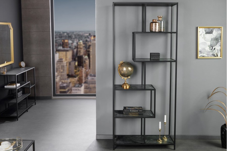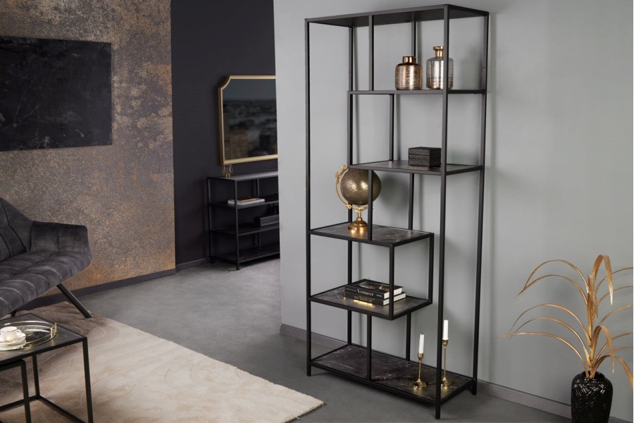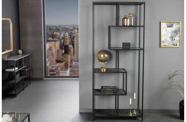 Matériaux : Étagères en bois revêtu aspect marbre, cadre en métal revêtu de poudre