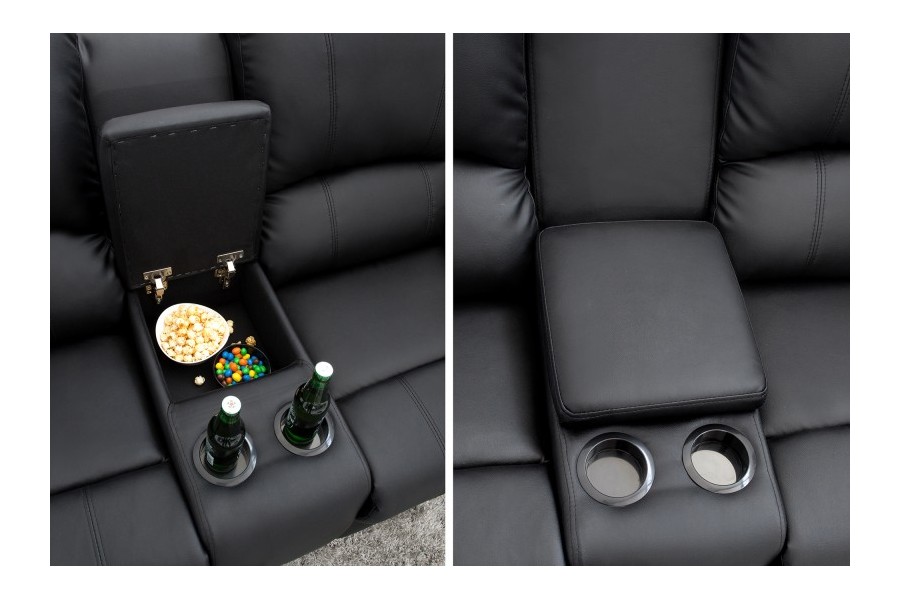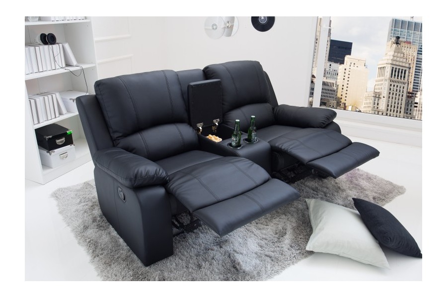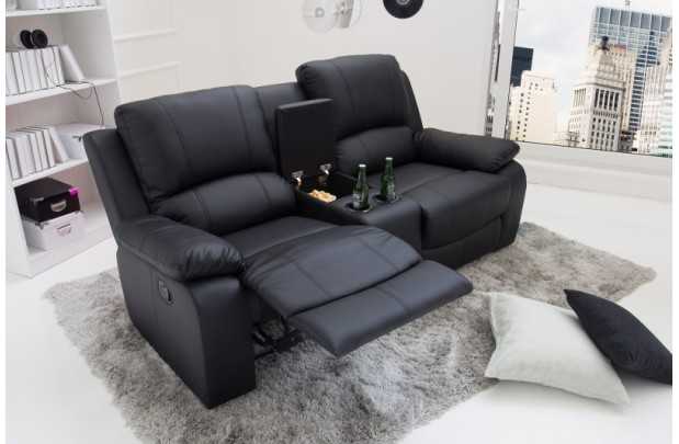 Fauteuil Relaxant de Cinéma Hollywood 2 Places en Similicuir Noir
