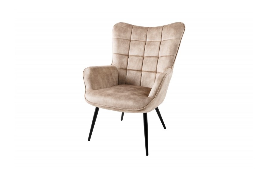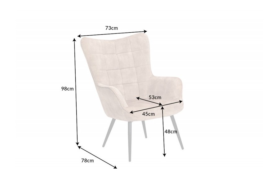 Design et Utilisation : Ce fauteuil offre un mélange parfait de confort et d'élégance. Le velours champagne ajoute une texture luxueuse, tandis que les pieds en métal noir apportent une touche moderne et robuste. Parfait pour créer un coin lecture chic dans le salon ou comme fauteuil d'appoint dans la chambre à coucher.