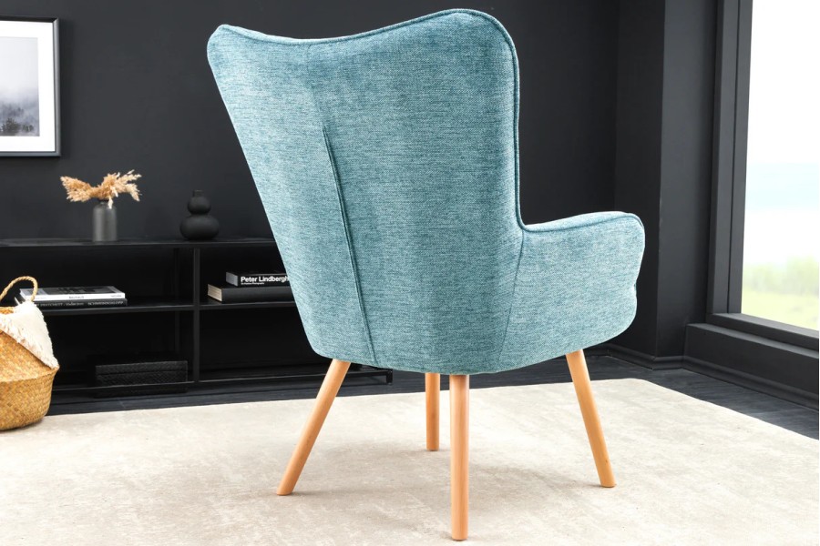 Ce fauteuil Scandinavia en tissu texturé bleu est la pièce idéale pour un coin lecture cosy, un salon accueillant ou un espace de travail raffiné.