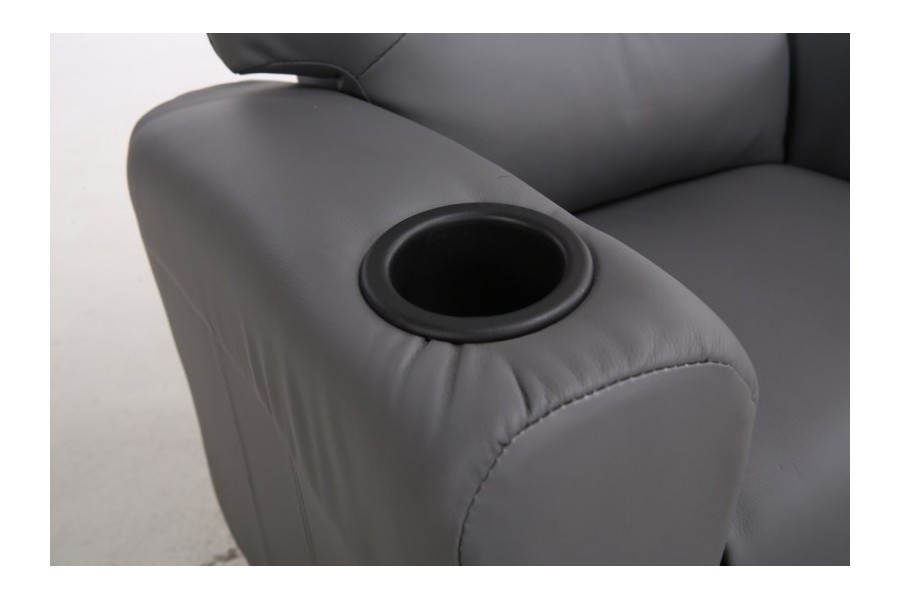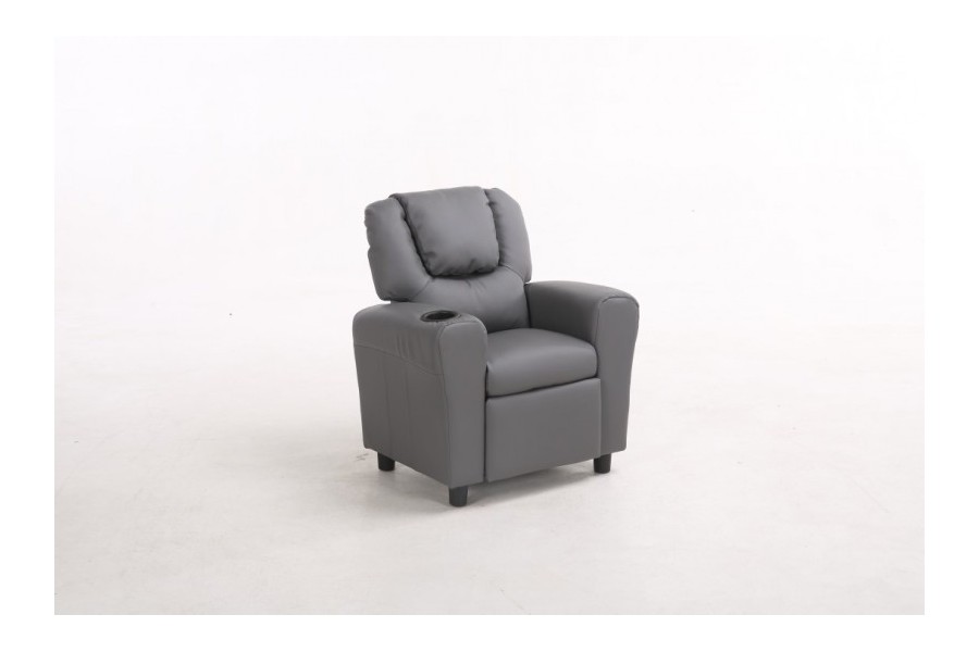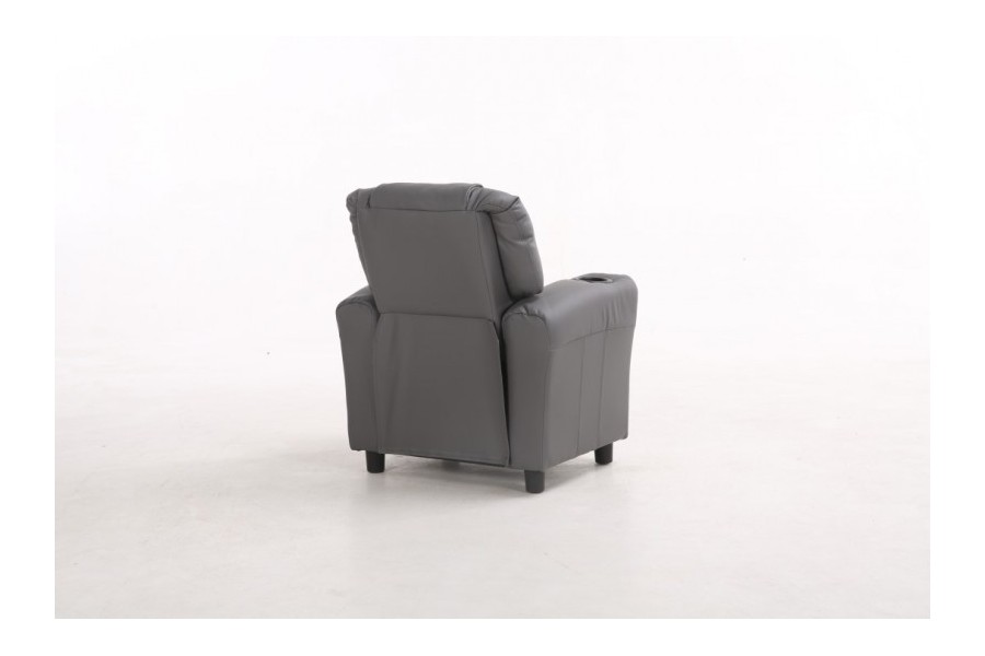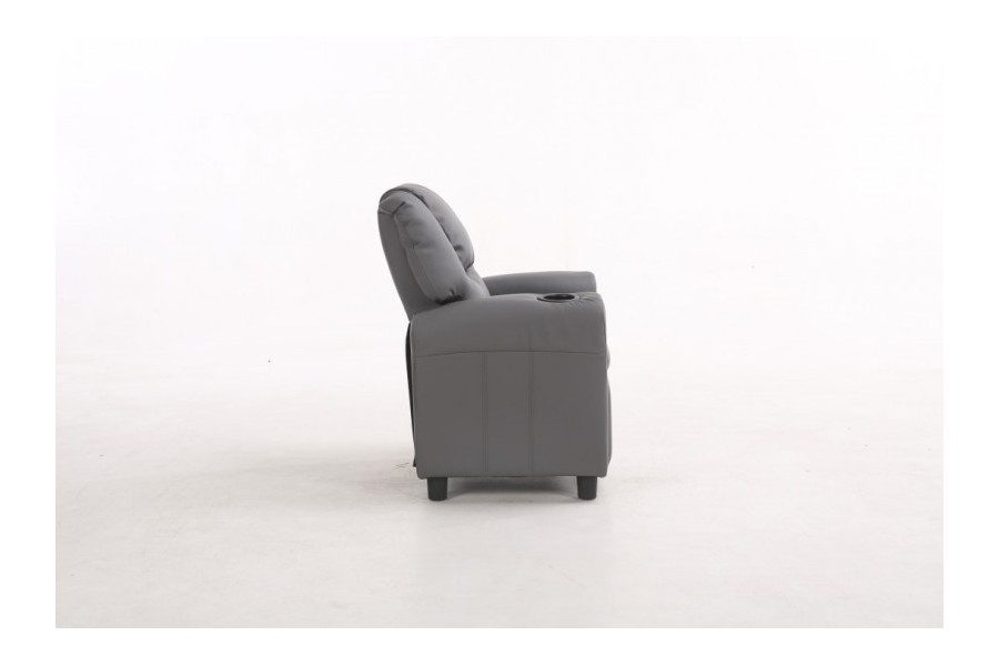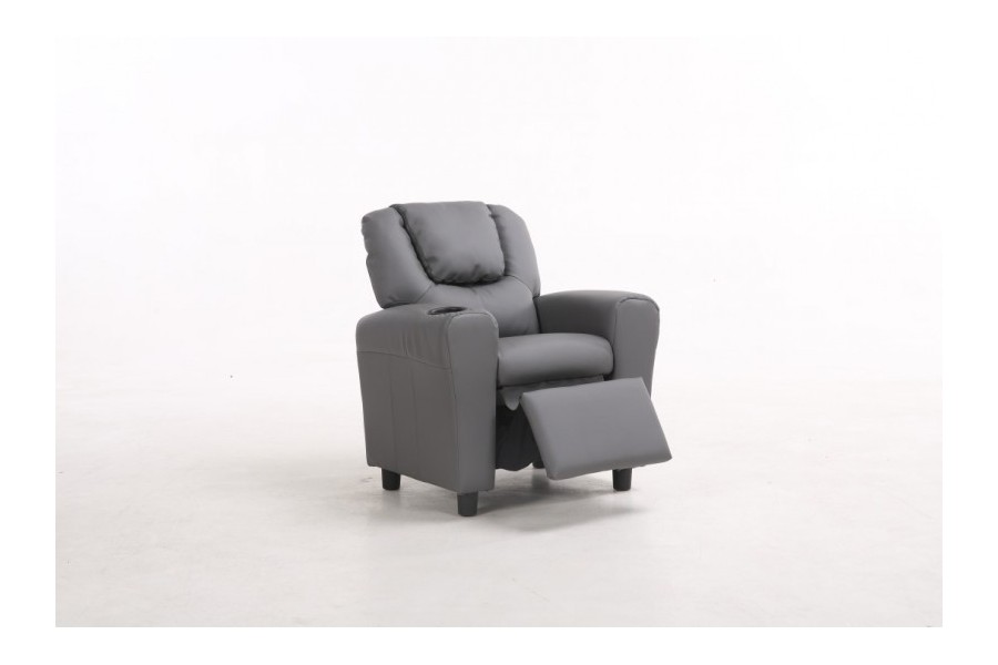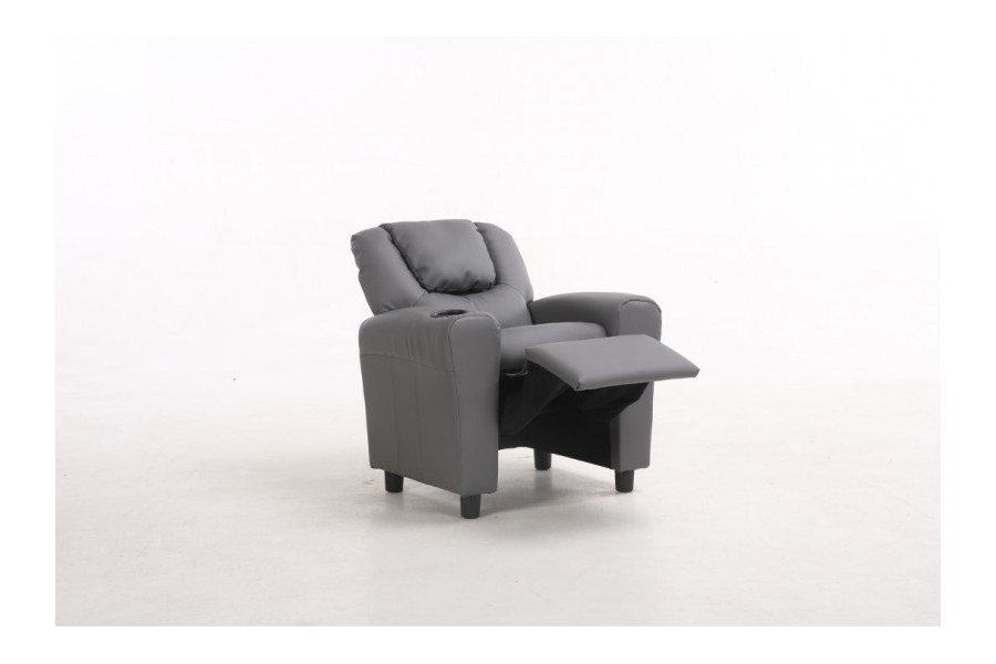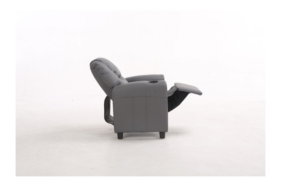 Confort inégalable pour ce mini fauteuil relax en simili cuir coloris gris. Relevable manuellement !