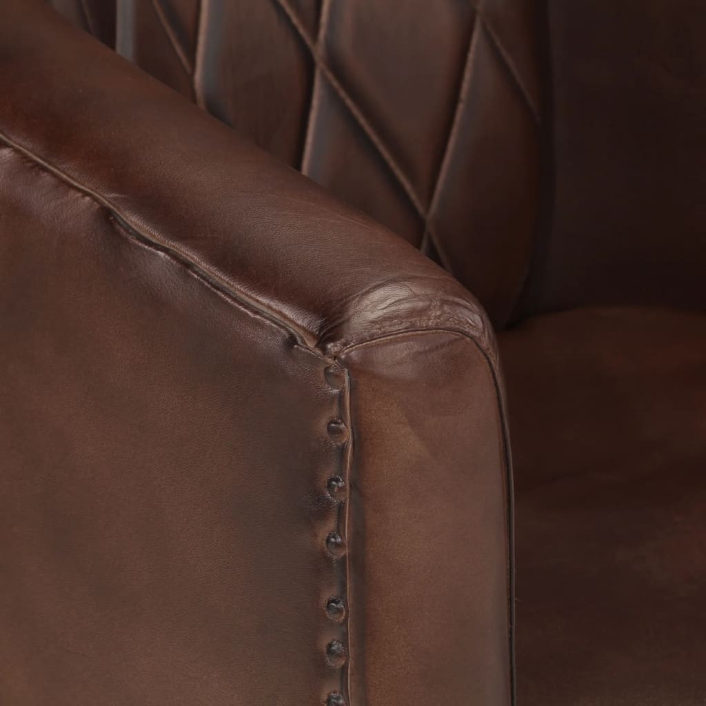 Ce luxueux fauteuil cabriolet, fabriqué en cuir véritable, est une solution d'assise parfaite pour discuter, lire, regarder la télévision ou simplement vous détendre. Cuir véritable : le cuir véritable est un matériau naturellement intemporel. Il peut durer toute une vie s'il est correctement entretenu. Sa surface lisse lui confère également un aspect luxueux tout en garantissant un confort optimal. Fabriqué en cuir véritable, le fauteuil est facile à nettoyer.Cadre en bois : le cadre en bois de manguier massif assure la robustesse et la stabilité du fauteuil.Expérience d'assise confortable : le siège et les accoudoirs bien rembourrés offrent un confort supplémentaire lorsque vous êtes assis.