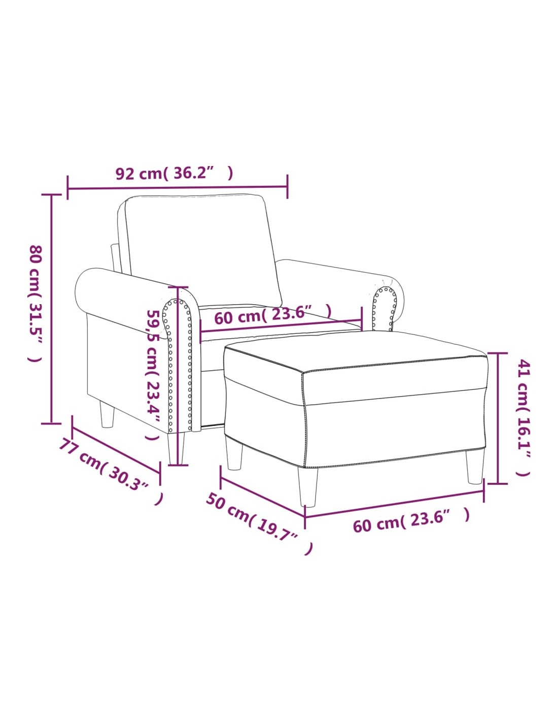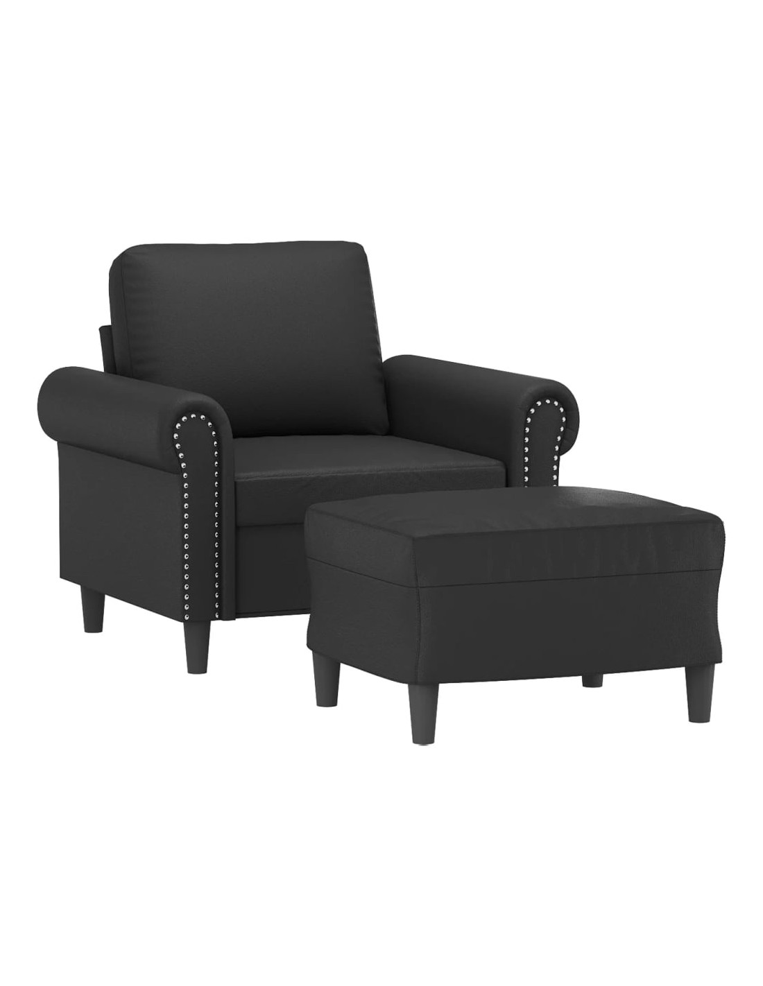Ce fauteuil avec repose-pied est un excellent endroit pour discuter, lire, regarder la télévision ou simplement vous détendre. Il est destiné à être un point central de votre maison. Similicuir durable : le similicuir de qualité supérieure est un matériau très durable. Il est résistant aux taches, ce qui le rend facile à nettoyer avec un chiffon humide. La surface lisse donne également un aspect luxueux et la beauté du cuir véritable.Structure robuste et stable : la structure en contreplaqué et en métal du canapé avec repose-pieds assure robustesse et stabilité.Expérience d'assise confortable : le fauteuil est très confortable avec le siège, les accoudoirs et le coussin de dossier bien rembourrés.Repose-pied polyvalent : ce repose-pied convient pour reposer vos pieds lorsque vous êtes allongé dans un canapé ou un fauteuil inclinable, ou pour vous offrir un siège supplémentaire dans votre pièce. De plus, le design simple et la taille compacte le rendent idéal pour presque tous vos espaces de vie.Design accrocheur : doté d'un design simple mais moderne, ce canapé avec repose-pied est destiné à attirer l'attention dans votre pièce.
