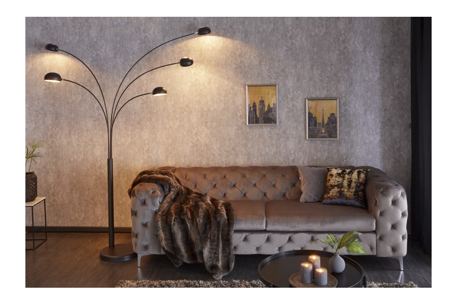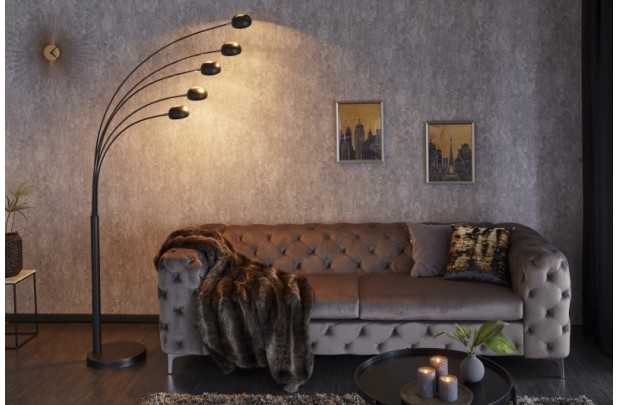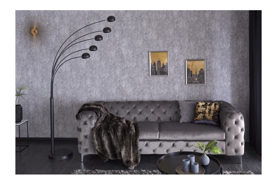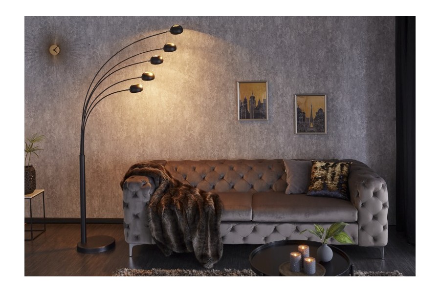Lampadaire design avec 5 lampes dorées, placé sur une base en marbre dans une couleur noire ajoutera un aspect de luxe à votre intérieur.