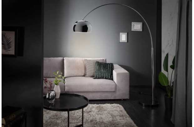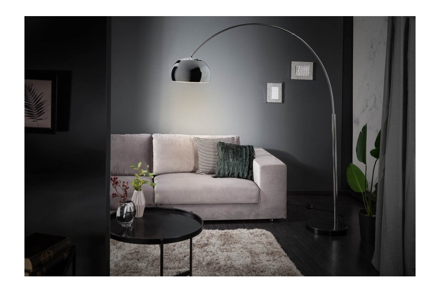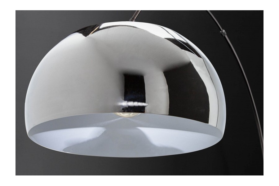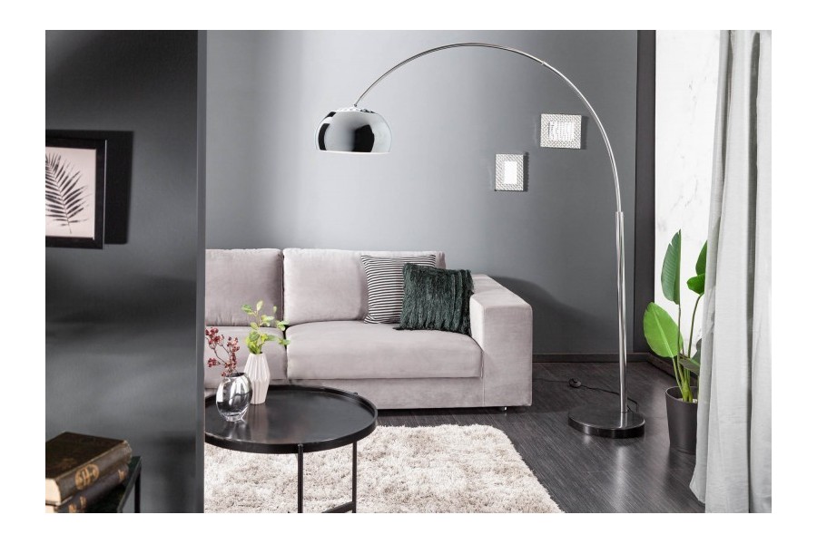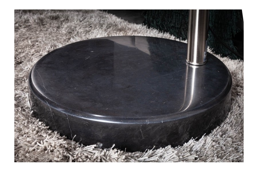 Sublime lampadaire extensible au design arqué avec un abat-jour chromé, placé sur une base en marbre noir ajoutera un design luxueux à votre intérieur.