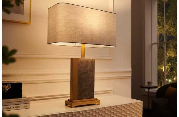 Design et Élégance : Cette lampe se distingue par son design élégant et son utilisation de matériaux de haute qualité. L'abat-jour en tissu gris diffuse une lumière douce et agréable, parfaite pour créer une ambiance chaleureuse. Le cadre en acier doré et marbre ajoute une touche de luxe et de sophistication, faisant de cette lampe un véritable point focal dans n'importe quelle pièce.