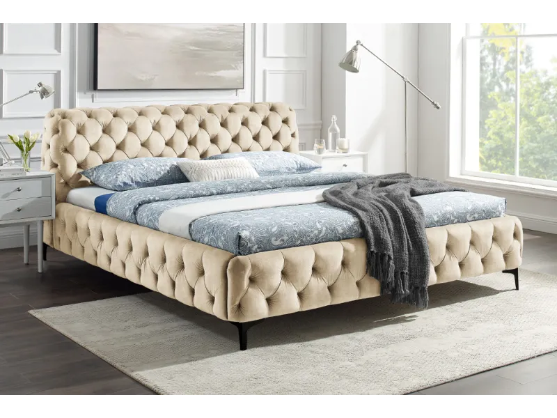 👉 Le lit MODERN BAROCK 180 x 200 cm en velours champagne incarne l’équilibre parfait entre luxe, confort et robustesse. Une pièce maîtresse qui sublimera votre chambre à coucher.