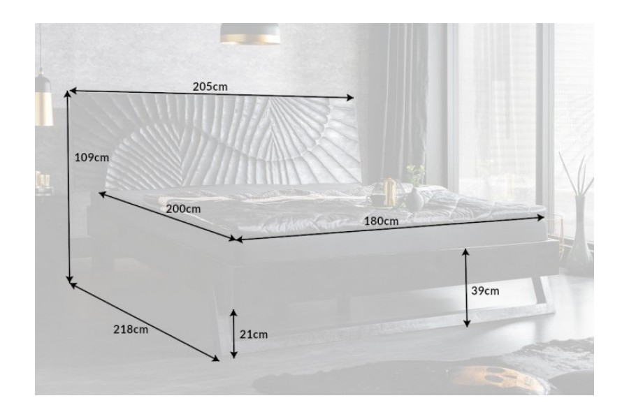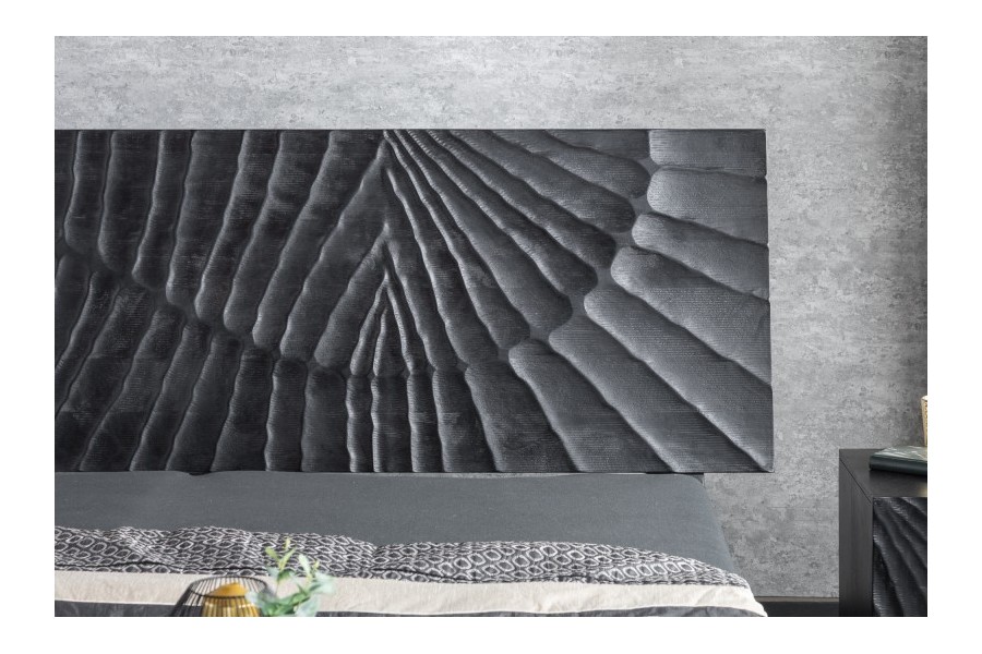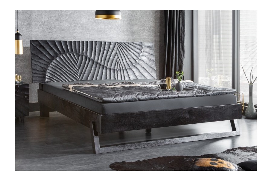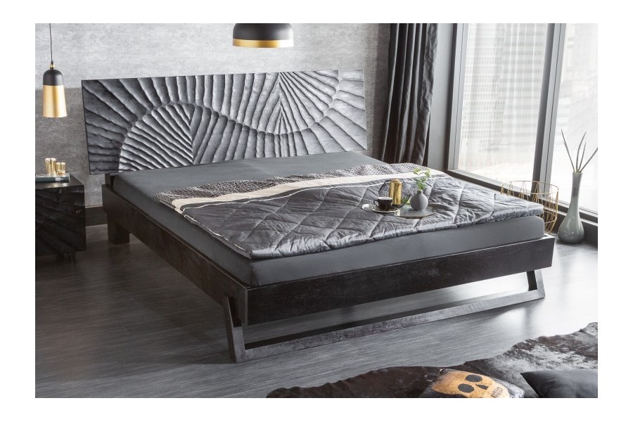 Lit adulte élégant vu le design de sculptassions en 3 dimensions faite à la main. Fabriquée en bois de mangue laqué dont la couleur noir mettra votre pièce en valeur.