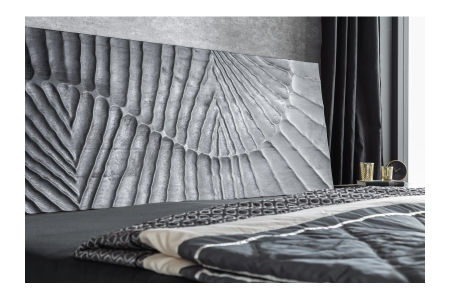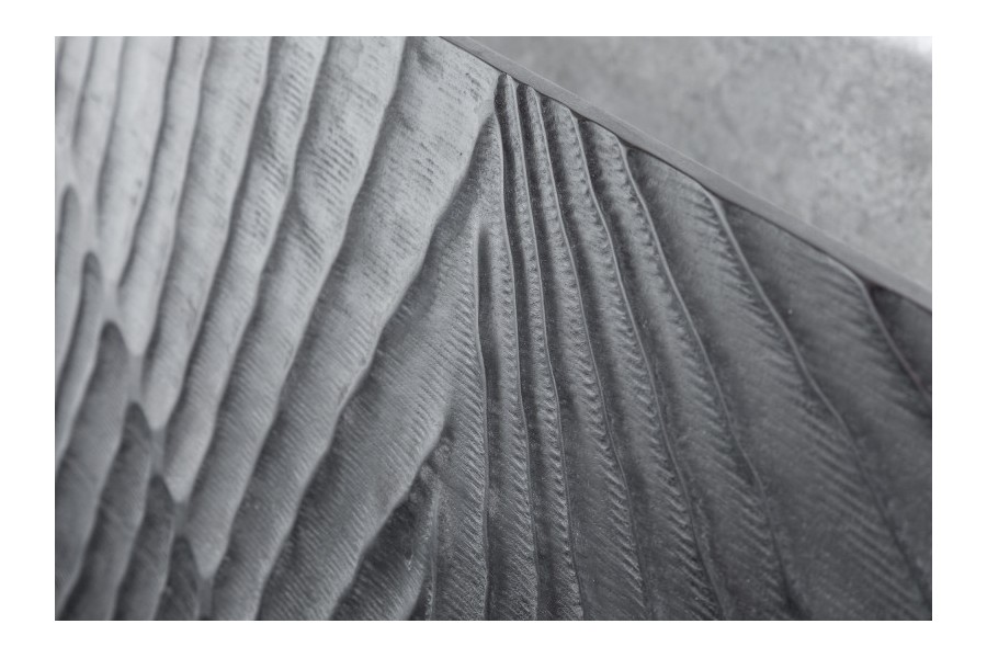 La surface 3D frappante est sculptée à la main.