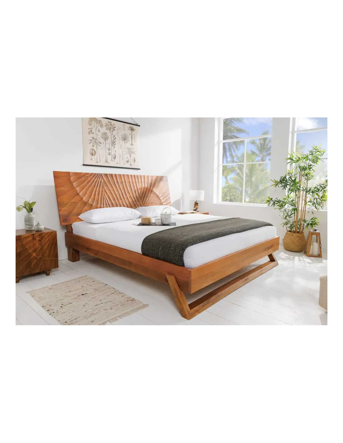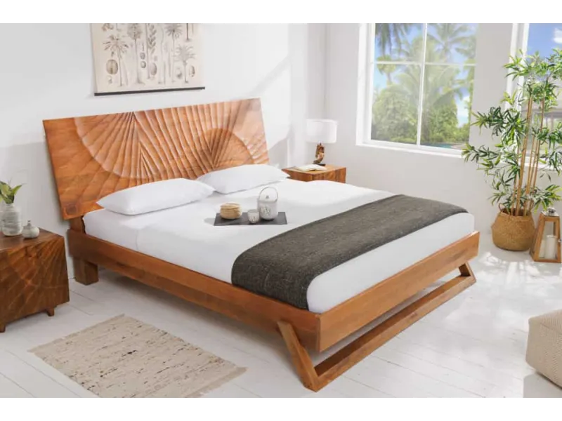 Lit adulte élégant vu le design de sculptassions en 3 dimensions faite à la main. Fabriquée en bois de mangue laqué dont la couleur brun mettra votre pièce en valeur.
