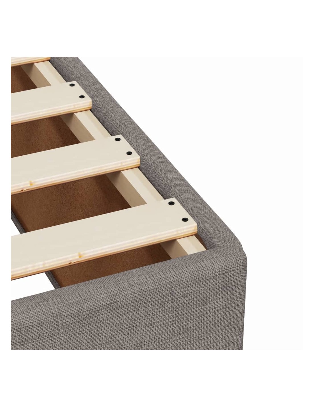 Profitez d'une meilleure nuit de sommeil reposante grâce à ce cadre de lit ! Il est un supplément accueillant à toute chambre à coucher. Matériau doux et durable : le tissu en polyester allie douceur, respirabilité et durabilité, vous garantissant un confort et une convivialité ultimes.Lattes pour un soutien optimal : ce cadre de lit est complété par des lattes pour offrir un soutien et une respirabilité essentiels à votre matelas.Pieds stables et durables : ce lit est soutenu par des pieds robustes, ce qui garantit sa stabilité, sa sécurité et sa fermeté. Bon à savoir :Un matelas n'est pas inclus avec ce lit. Nous offrons une sélection variée de matelas. Vous pouvez consulter notre boutique pour trouver un matelas assorti.