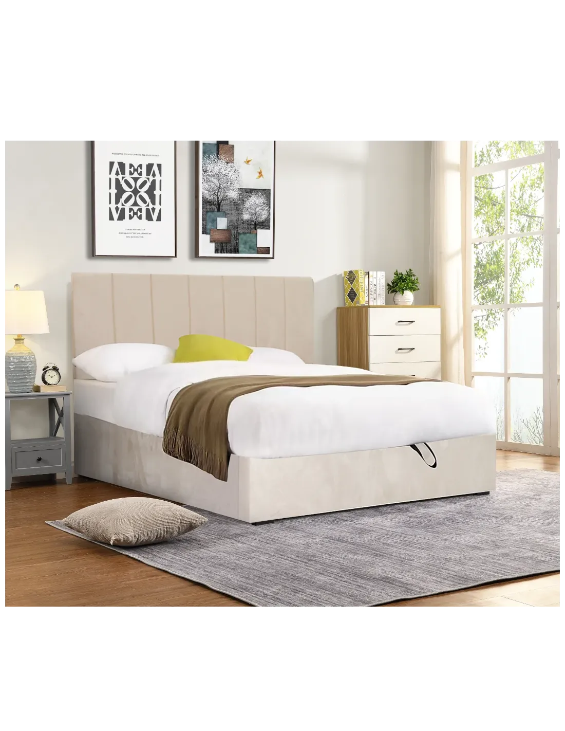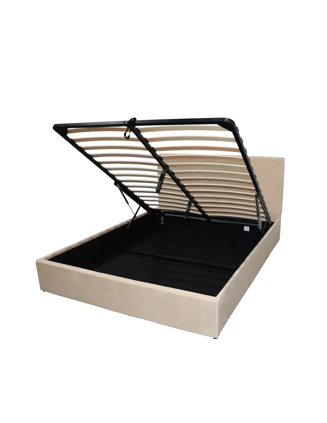 👉 Le lit coffre DUBAI 160x200 cm en velours beige est la solution idéale pour une chambre raffinée et pratique, offrant confort, style et sécurité grâce à son tissu ignifugé UKFR.