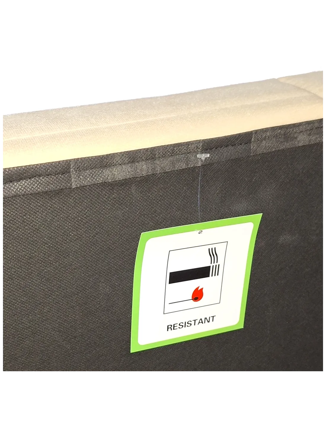 Revêtement en velours beige UKFR (ignifugé), doux au toucher, élégant et conforme aux normes britanniques de sécurité incendie.