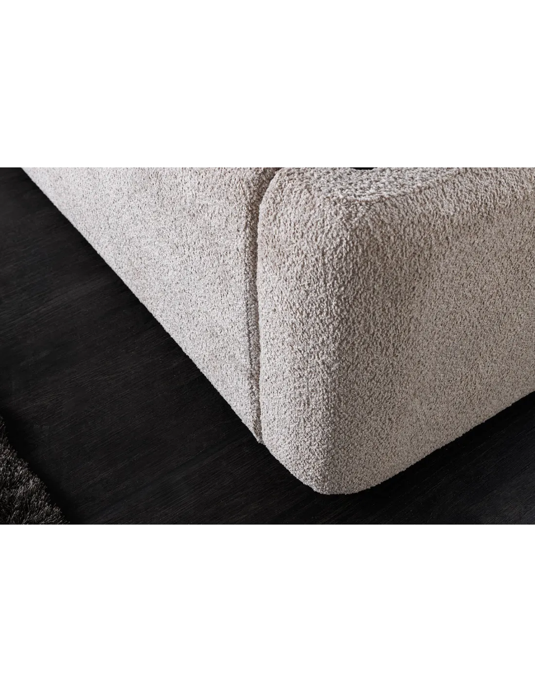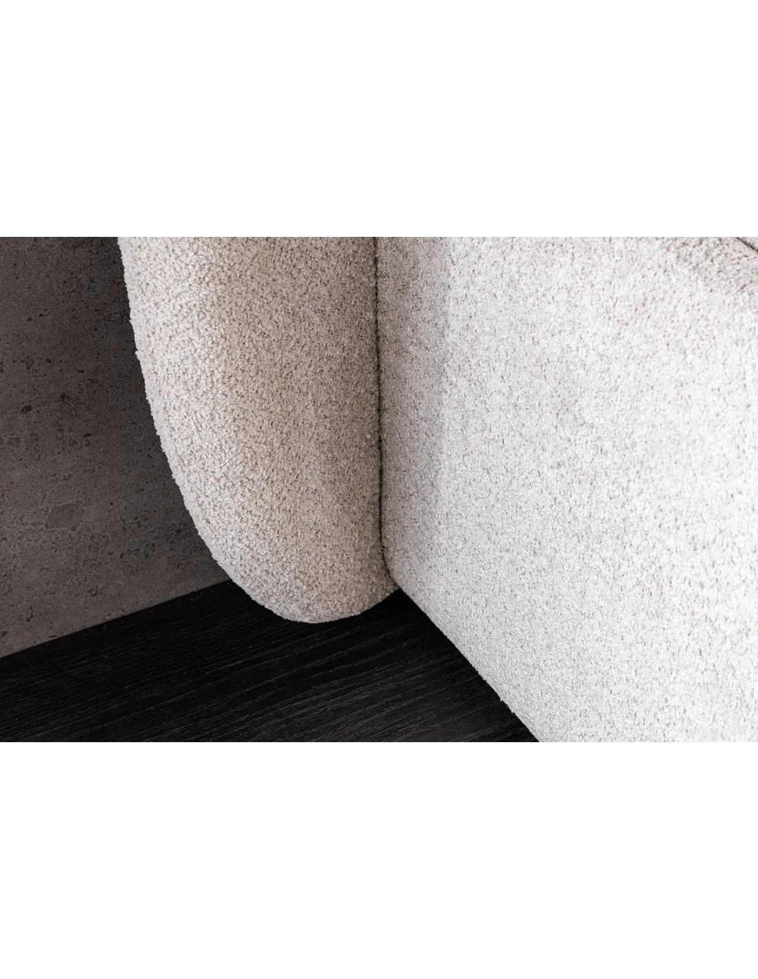 Revêtement en tissu bouclé grège, au toucher doux et chaleureux.