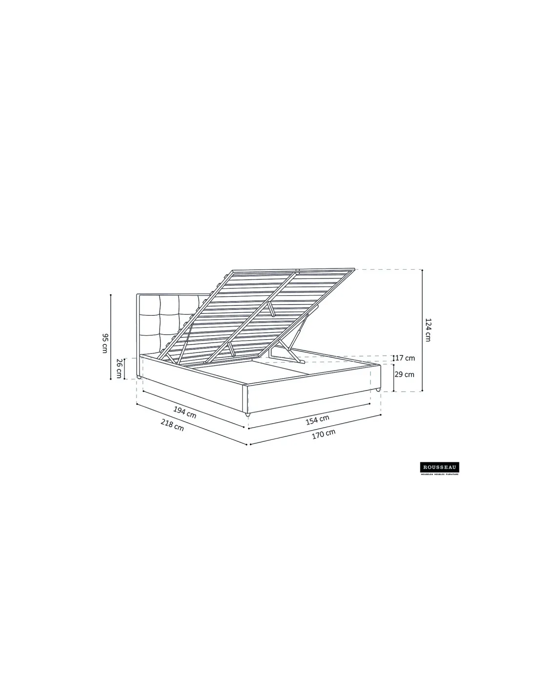 Dimensions totales : H 95 x L 170 x P 218 cm.