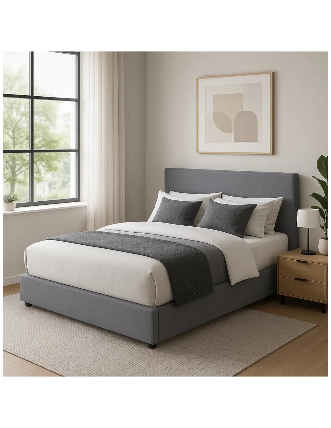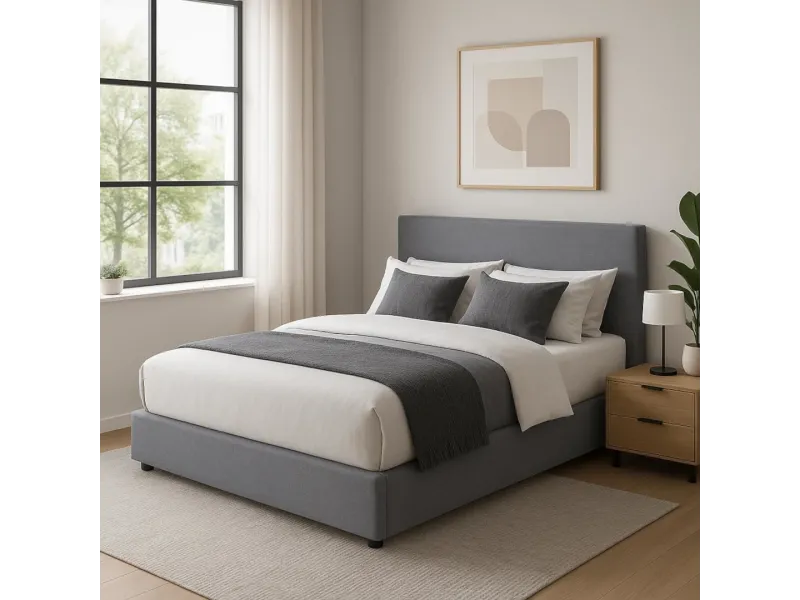 👉 Le lit coffre QINA 160x200 cm en tissu gris est la solution idéale pour combiner confort, style et praticité dans votre chambre, tout en profitant d’un rangement astucieux et discret.