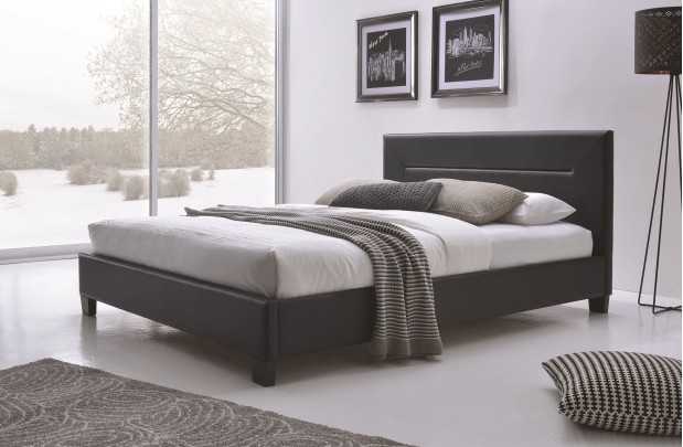 Magnifique lit noir fait en simili cuir ornera votre chambre à coucher !