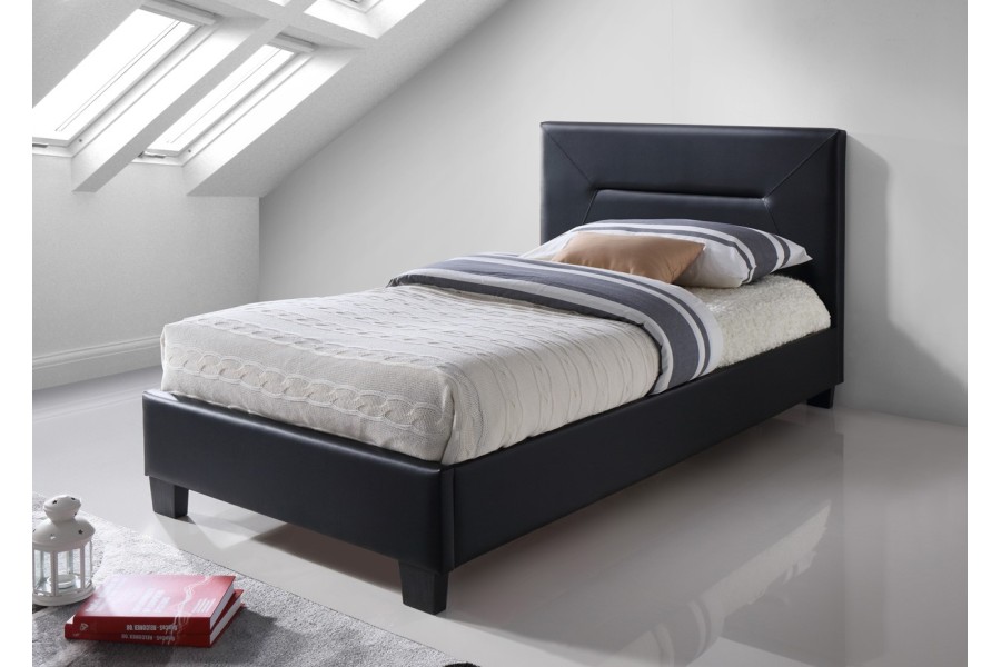 Magnifique lit noir fait en simili cuir ornera votre chambre à coucher.