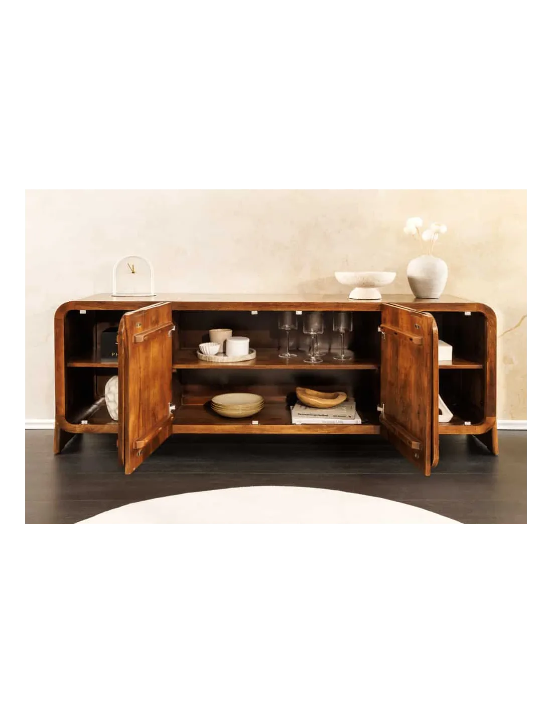 Livré entièrement monté, BRASIL séduit par son design épuré et sans poignées. Derrière quatre portes sans poignées se cachent six compartiments spacieux, offrant un espace de rangement polyvalent pour la vaisselle, les objets de décoration ou les documents. Les pieds latéraux marquants confèrent au buffet une élégante légèreté et soulignent son caractère artisanal. Que ce soit dans le salon, la salle à manger ou l'entrée, BRASIL est un meuble fonctionnel et élégant, au charme naturel.