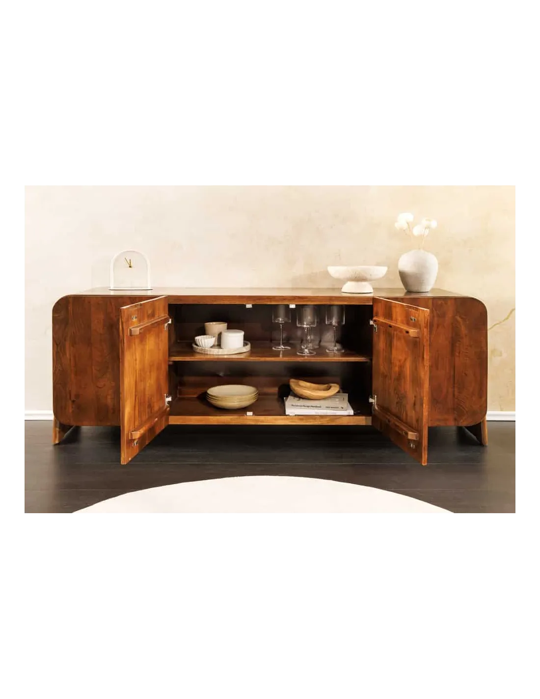 Le buffet BRASIL apporte une touche naturelle d'Amérique du Sud à votre intérieur. Fabriqué en manguier massif laqué, il séduit par sa couleur brune chaleureuse et son veinage caractéristique. Sa forme arrondie crée une silhouette douce et apporte calme et harmonie à votre intérieur.