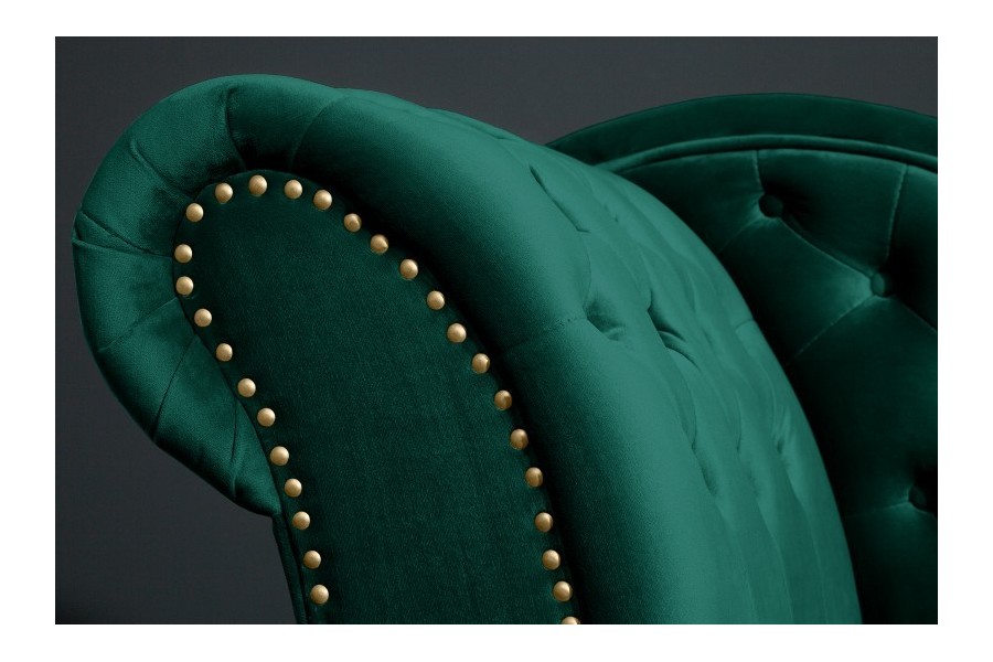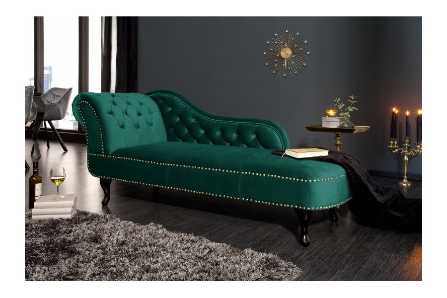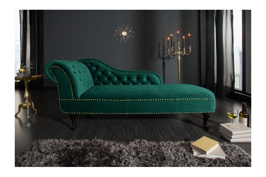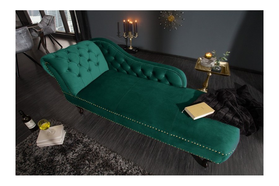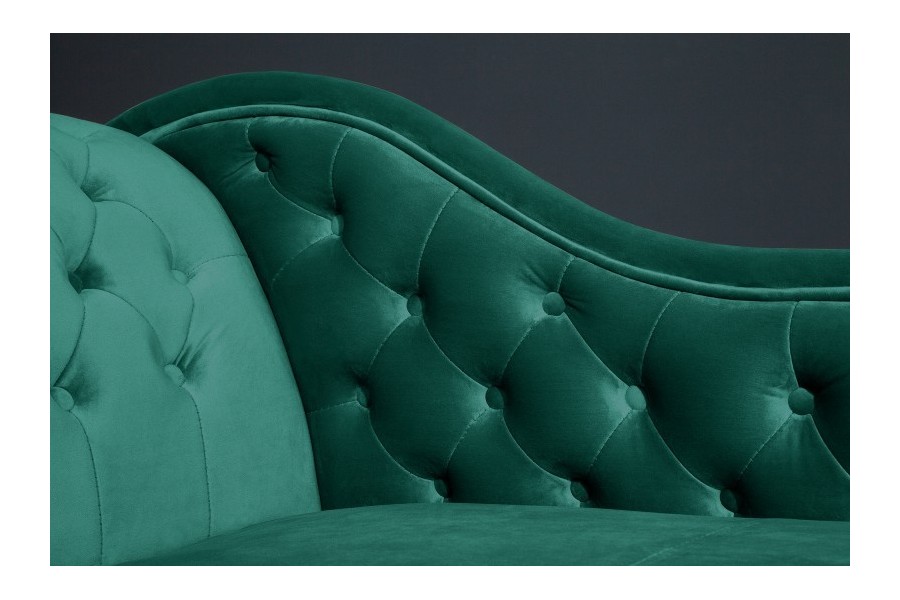 Alliant prestige, confort et allure royale, la récamière CHESTERFIELD 170 cm en velours vert émeraude est un véritable chef-d'œuvre décoratif, parfait pour ceux qui recherchent une pièce élégante et sophistiquée pour sublimer leur intérieur.