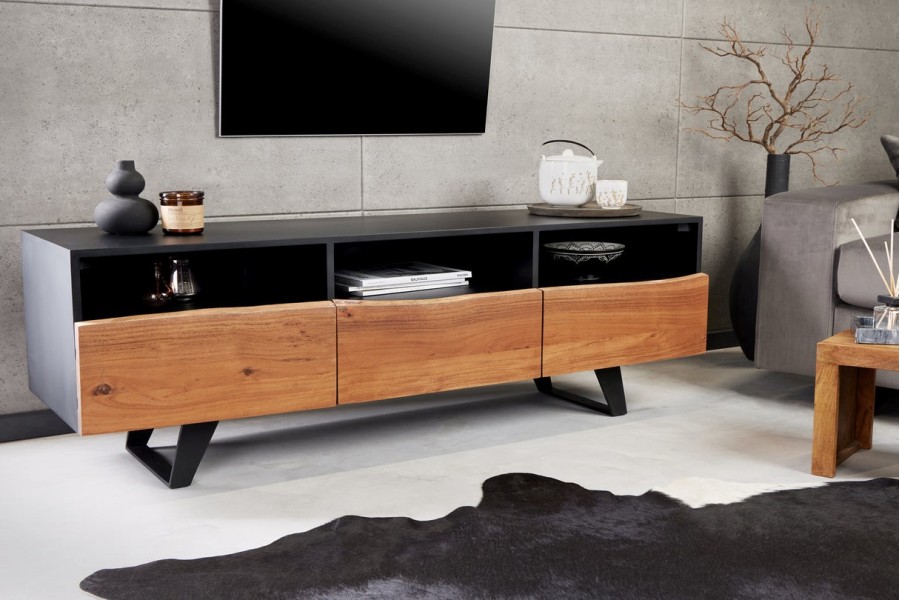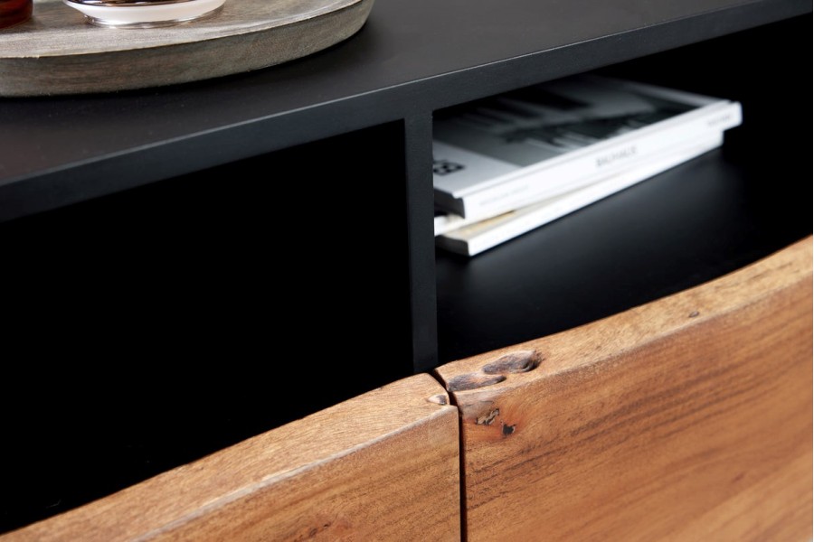 Ce buffet de 140 cm combine le charme du bois naturel avec la robustesse du métal, en faisant une pièce à la fois fonctionnelle et décorative. Sa structure bien pensée, avec six compartiments et un tiroir, permet de ranger vos objets tout en apportant une touche chaleureuse et moderne à votre intérieur. Chaque buffet est unique grâce aux variations naturelles de l'acacia, vous offrant une pièce de mobilier au caractère exclusif.