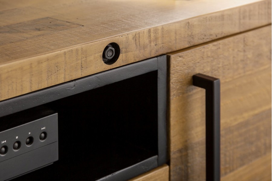 Ajoutez une touche de style industriel et de fonctionnalité à votre espace de divertissement avec ce meuble TV en bois massif. Ses cadres en fer noir confèrent un charme industriel audacieux, tandis que les matériaux de haute qualité en font un choix exceptionnel pour une expérience multimédia élégante.