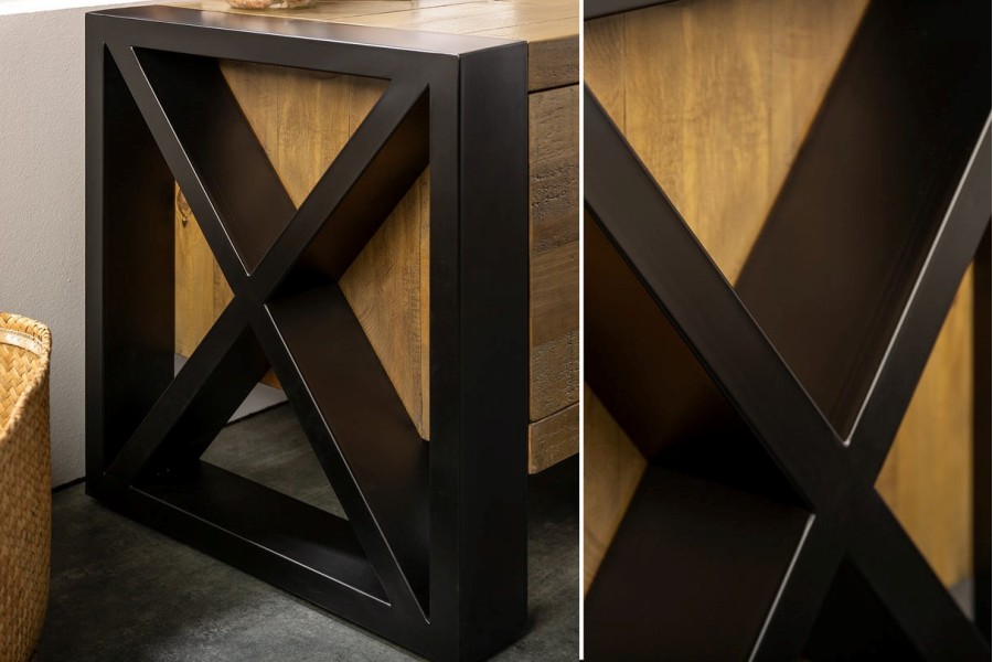 - Les cadres en fer noir ajoutent une touche industrielle audacieuse à ce meuble TV.