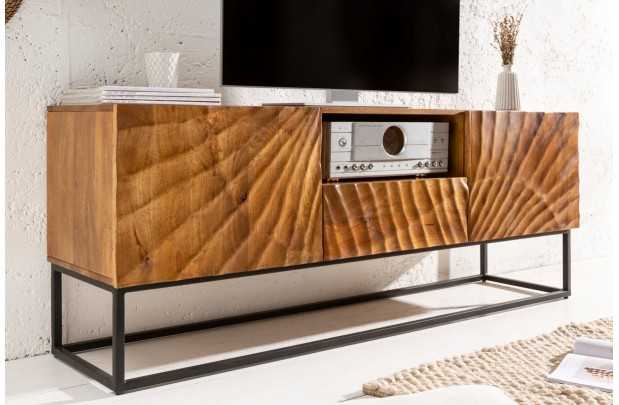 Transformez votre espace de divertissement avec ce meuble TV en bois massif unique. Ses sculptures 3D réalisées à la main créent un attrait artistique, tandis que sa construction solide et ses caractéristiques fonctionnelles en font un choix exceptionnel pour une expérience multimédia sophistiquée.