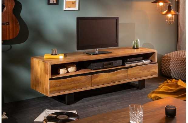 Transformez votre espace de divertissement avec ce meuble TV en bois d'acacia massif. Sa finition miel naturel et son design élaboré en font un choix exceptionnel pour une expérience multimédia sophistiquée.