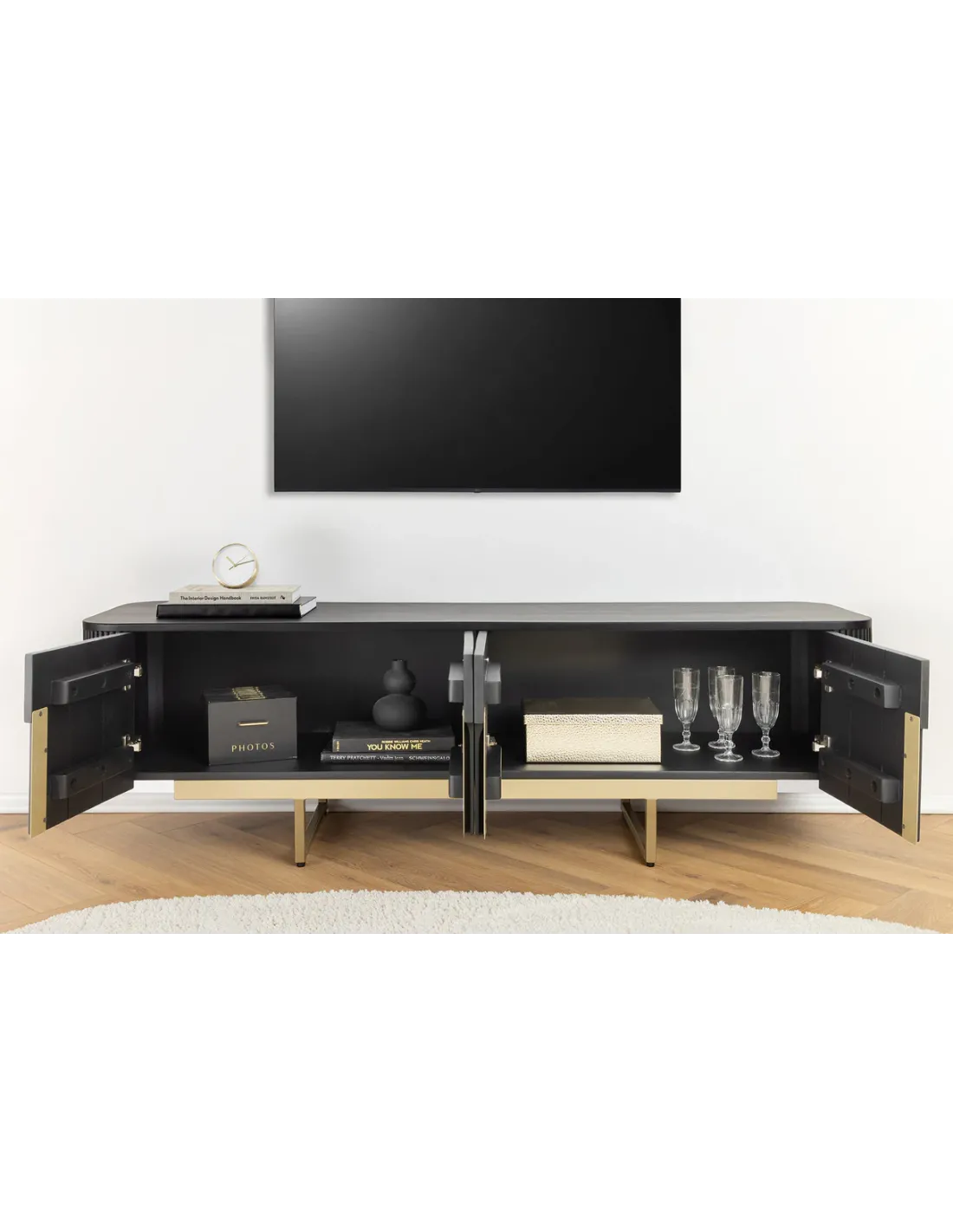 Le meuble TV GATSBY trouvera sa place aussi bien dans un salon moderne, un intérieur vintage que dans une ambiance art déco chic. Il peut également servir de meuble bas pour mettre en valeur vos objets décoratifs, cadres ou lampes.