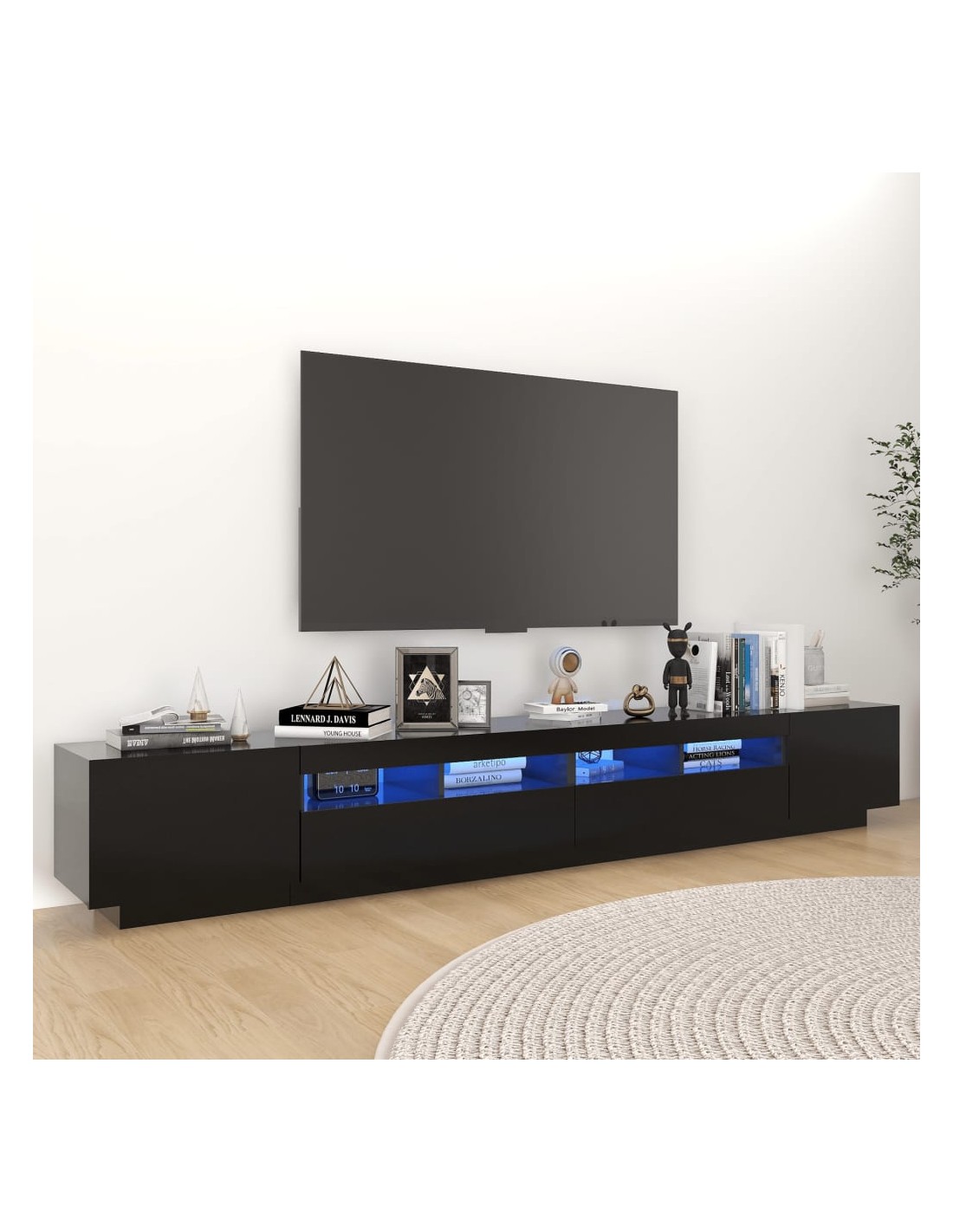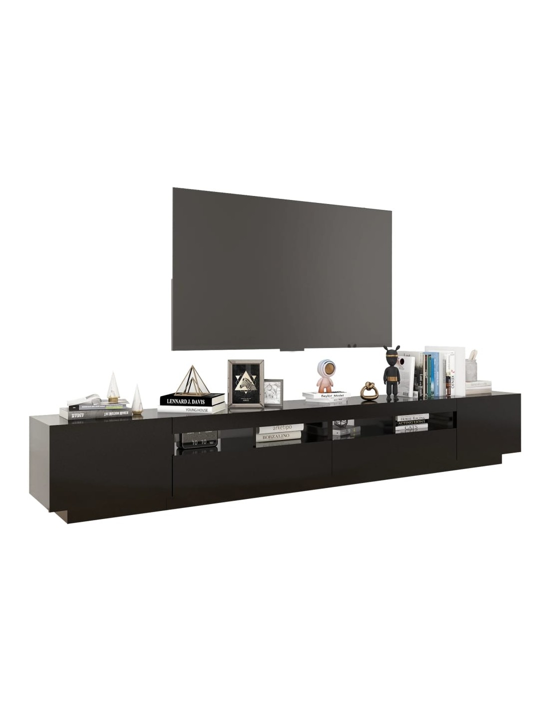 Avec un design à la fois tendance et pratique, ce meuble TV avec éclairage LED deviendra certainement un point central de votre pièce. La construction robuste de ce meuble HiFi le rend très durable. Il vous reste amplement d’espace pour garder votre lecteur DVD, votre console de jeu, votre appareil de streaming et vos supports multimédia bien organisés. Ce meuble TV dispose de lumières LED RVB, qui a différents menus pour changer la couleur des lumières et de laisser la couleur s’ajuster automatiquement. Les lumières LED soulignent l'aspect moderne et contribuent à l'impression de tendance. De plus, ce meuble TV est facile à nettoyer avec un chiffon humide. Remarque : ce meuble TV contient 2 meubles avec des lumières LED et 1 meuble qui peut être séparé en 2 petits meubles.Ce produit est doté d'un connecteur USB, mais la source d'alimentation certifiée de USB 5V n'est pas incluse.