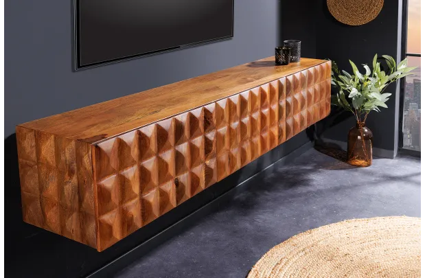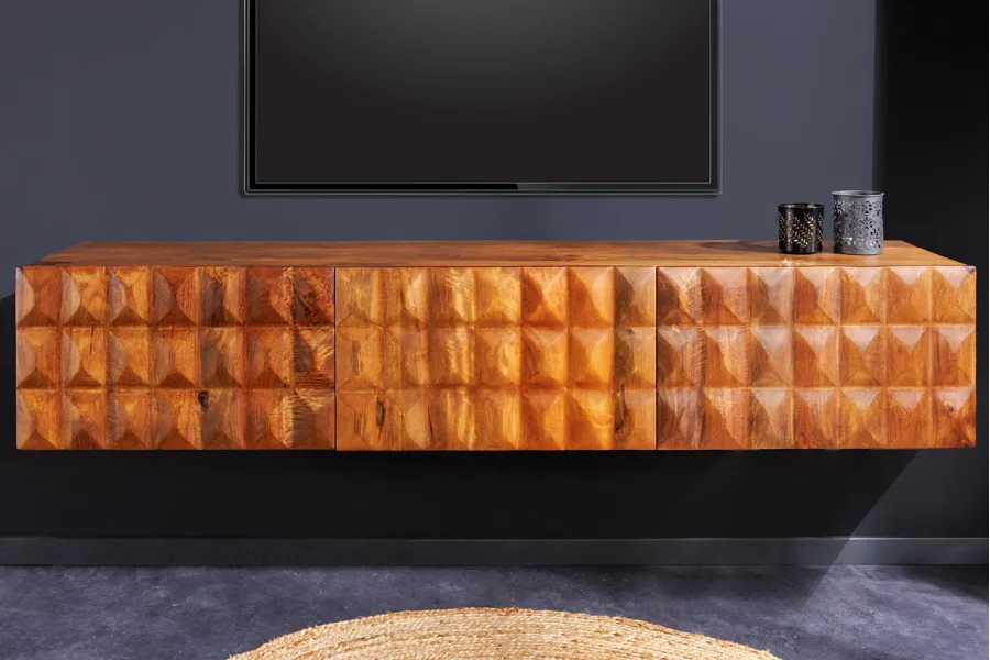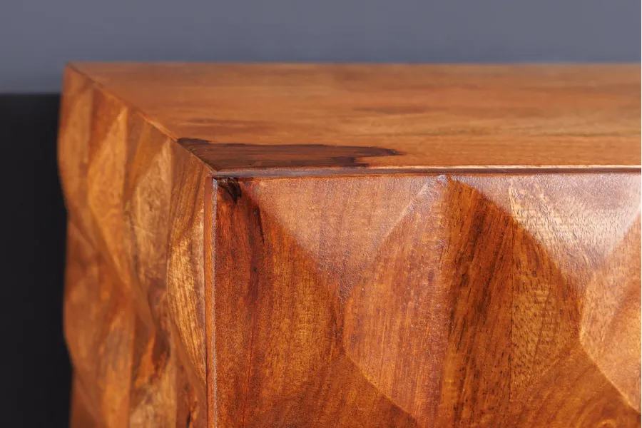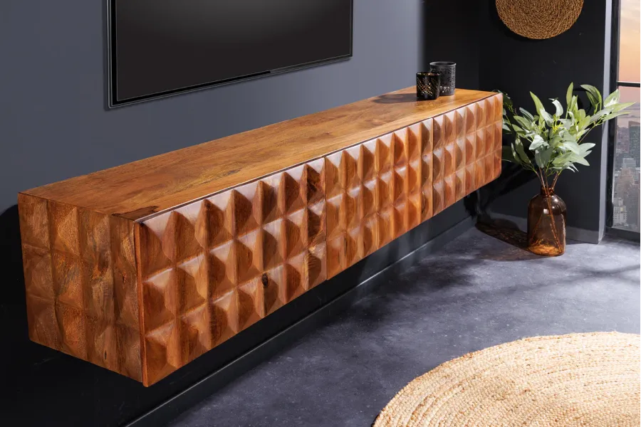 Fabriqué en bois massif de manguier, chaque meuble présente des variations naturelles dans les teintes et textures, ce qui en fait une pièce unique. Le design 3D apporte de la profondeur et de la modernité à votre salon tout en s’intégrant harmonieusement avec divers styles de décoration.