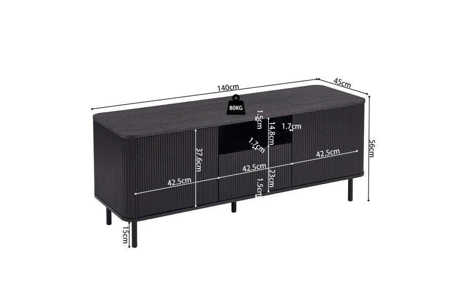 Avec une longueur de 140 cm, ce meuble TV est idéal pour les téléviseurs de taille moyenne. Son design épuré et ses options de rangement multiples en font une solution à la fois pratique et élégante pour organiser et embellir votre espace de vie.