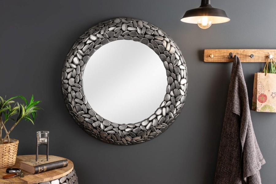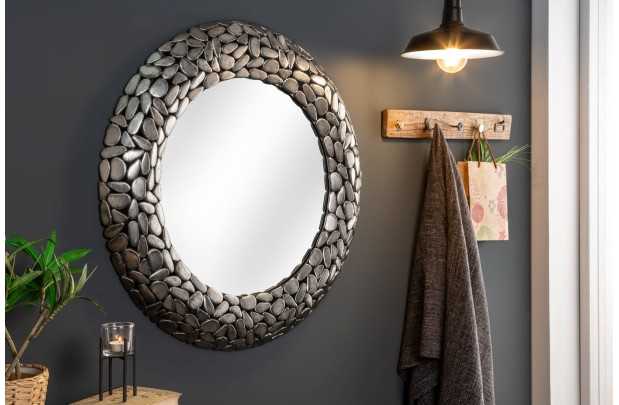 Transformez votre mur en une galerie d'art avec le miroir rond au cadre en mosaïque de pierre. Son design unique, sa fabrication artisanale et sa couleur argent en font un choix remarquable pour les amateurs d'originalité.