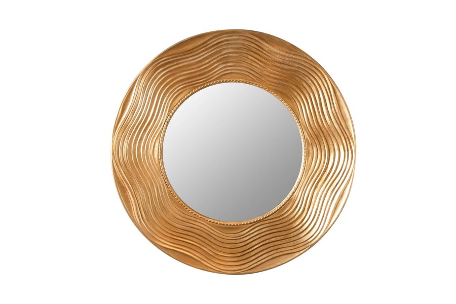 À la croisée du design artistique et du design contemporain , ce miroir rond doré séduit par son cadre sculpté aux formes ondulées inspirées des vagues.