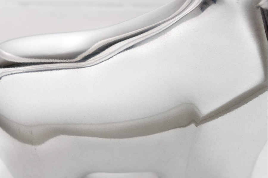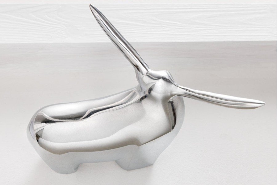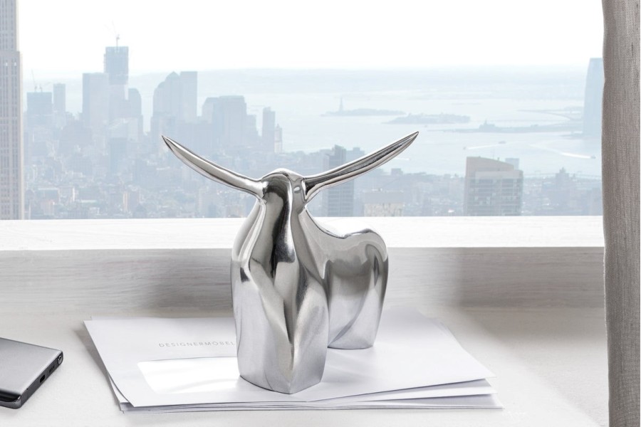 Presse-papier design en forme de taureau argenté, parfait comme élément de décor.