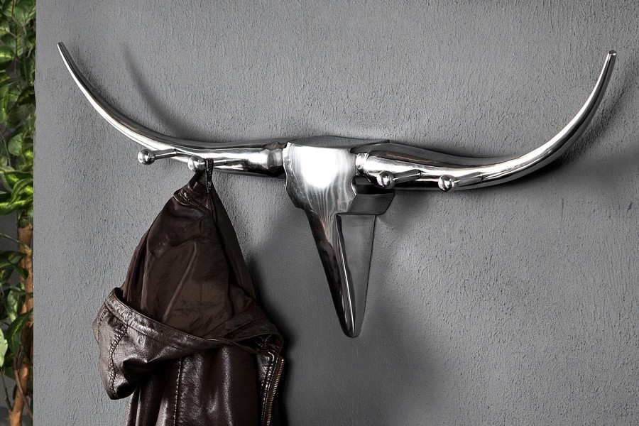 Patère élégante en forme de tête de taureau en aluminium avec 4 crochets pour les manteaux et vestes ou divers autres ustensiles. Elle est pratique et tendance avec un design innovant et un coloris chaud et charmant ! Elle ajoutera un style moderne à votre intérieur !