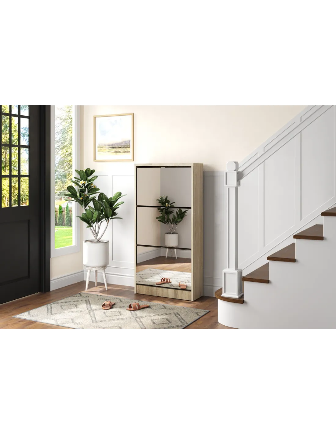 Conseil déco : Associez-le à un tapis graphique ou un banc d’entrée pour un espace à la fois pratique et accueillant.