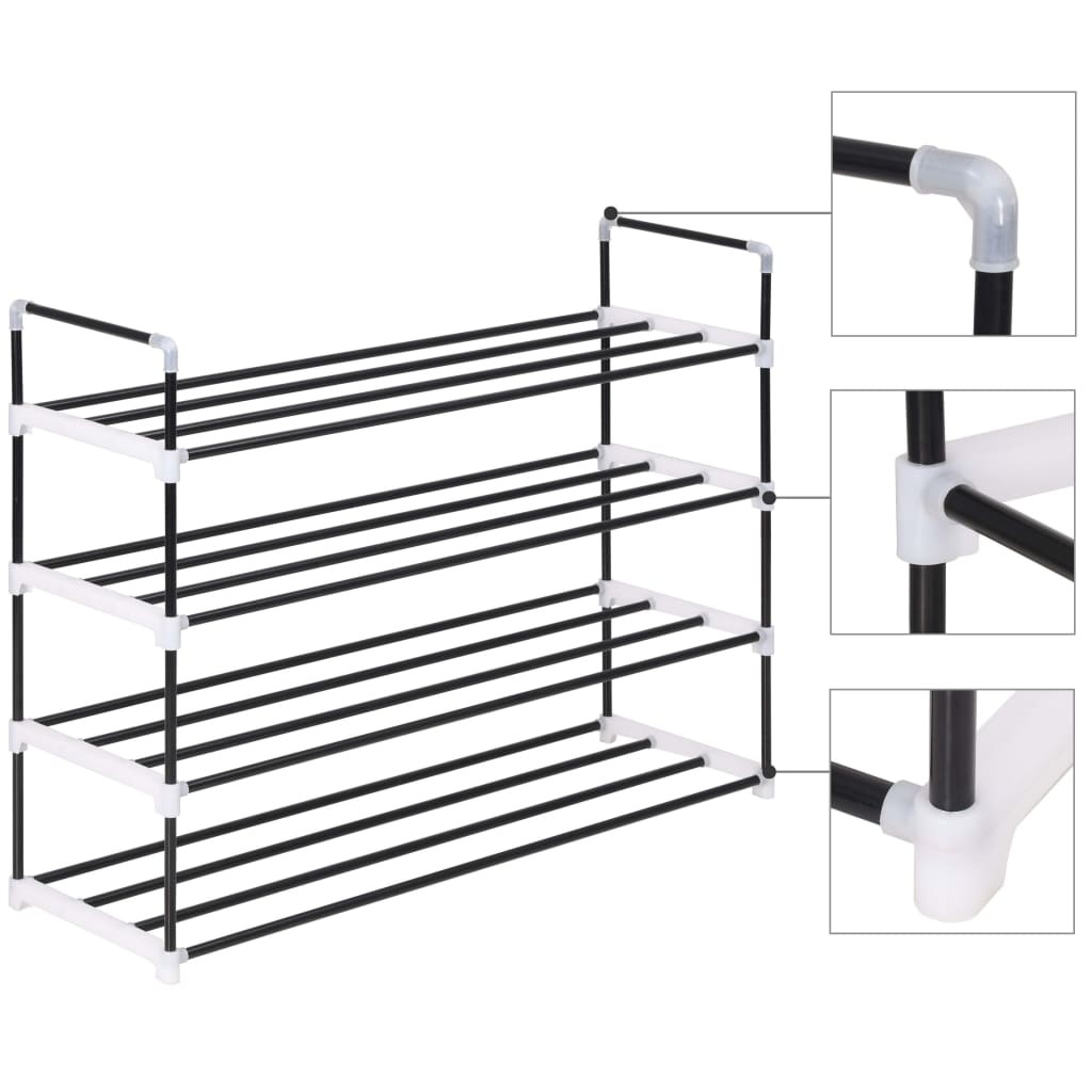 Cette étagère à chaussures minimaliste est une solution de rangement idéale pour vos chaussures. Il a une structure tubulaire en métal, qui est légère mais robuste, ce qui rend le porte-chaussures facile à déplacer et assez durable. Il dispose de quatre étagères généreuses qui offrent suffisamment d'espace pour ranger vos chaussures et les mettre hors vue. L'assemblage est facile.