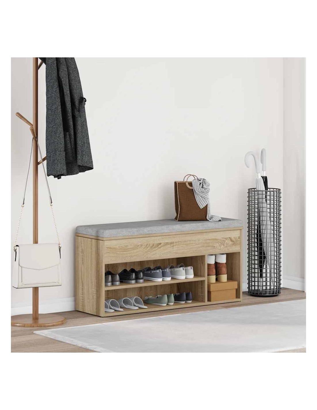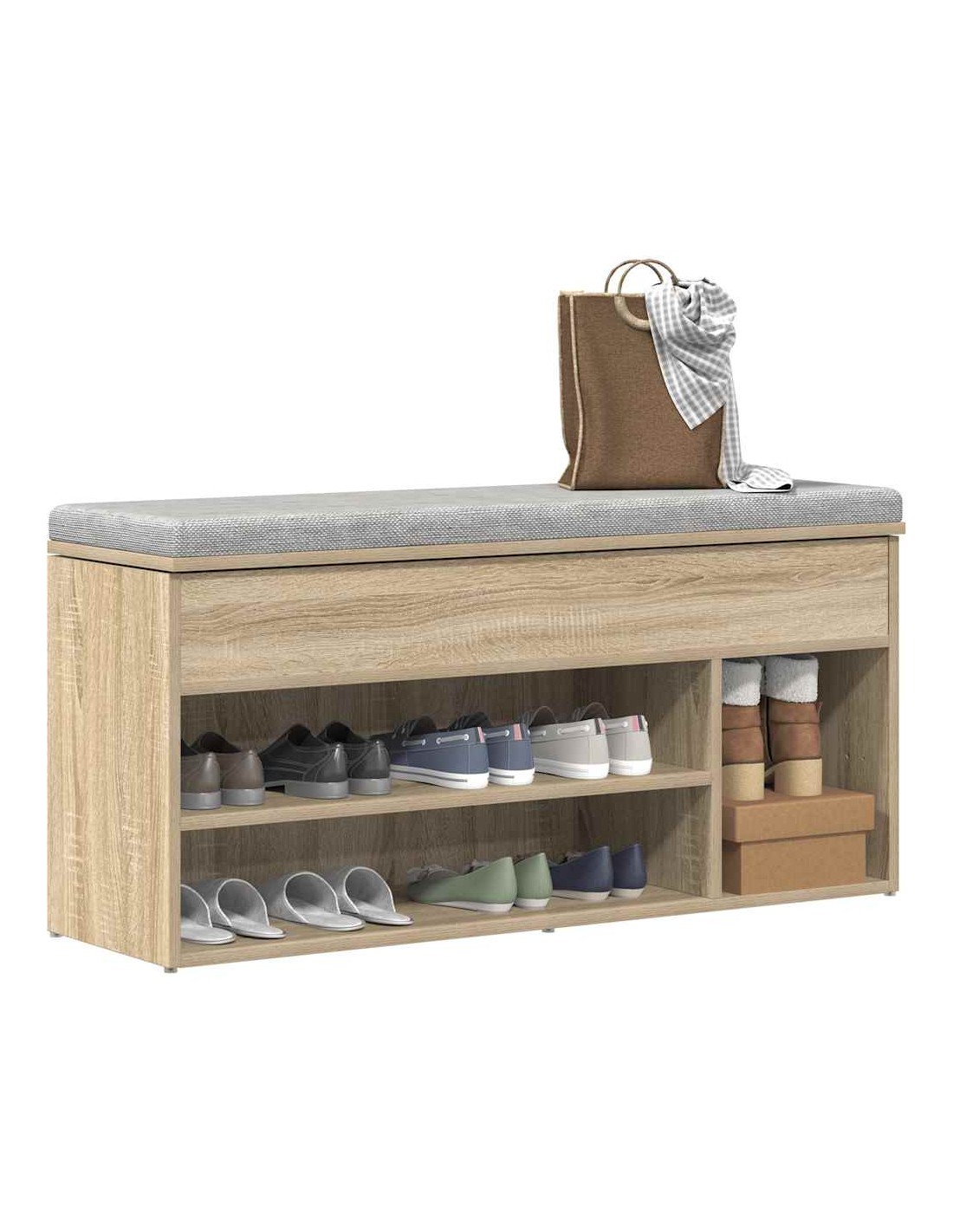 Gardez vos chaussures loin de l'encombrement et créez un environnement bien rangé avec cet élégant banc à chaussures ! Matériau stable et durable : le bois d'ingénierie est un matériau durable et stable dont la surface lisse résiste à l'humidité, à la déformation et au fendillement, ce qui en fait un choix fiable pour une grande variété de projets.Grand espace de rangement : l'armoire à chaussures offre un vaste espace de rangement pour une grande variété de chaussures, les gardant bien organisées et faciles d'accès.Dessus pratique : doté d'un plateau lisse et robuste, le meuble de rangement pour chaussures offre un espace confortable pour se chausser ou se déchausser, ajoutant à la fois fonctionnalité et style à votre espace.Facile à entretenir : grâce à sa surface lisse, l'organisateur à chaussures se nettoie facilement à l'aide d'un chiffon humide et nécessite peu d'entretien.