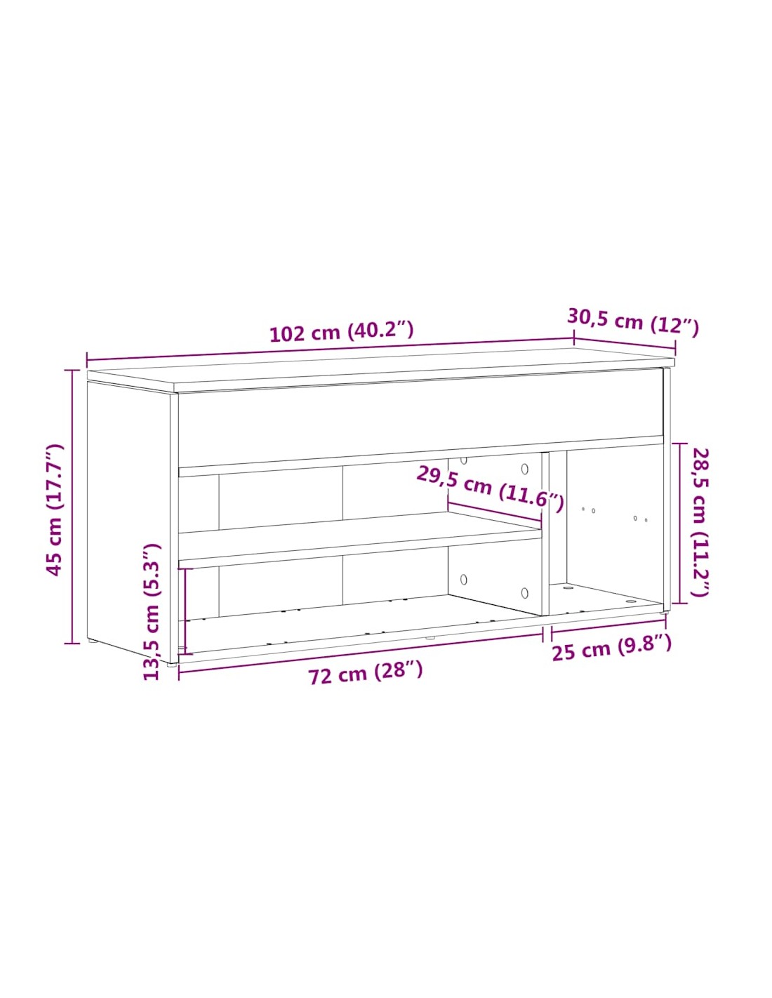 - Dimensions : 102 x 30,5 x 45 cm (L x l x H)