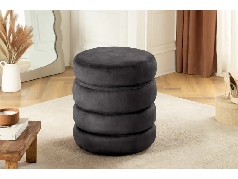 Le tabouret VOQUE en velours gris est fonctionnel et esthétique, alliant style contemporain, confort et rangement pratique. C’est la solution idéale pour optimiser vos espaces tout en apportant une touche décorative raffinée.