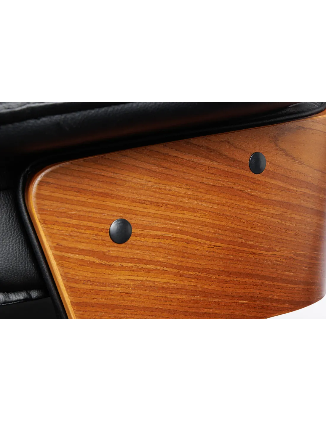 Design sophistiqué combinant le chic du similicuir noir et la chaleur du bois de noyer.