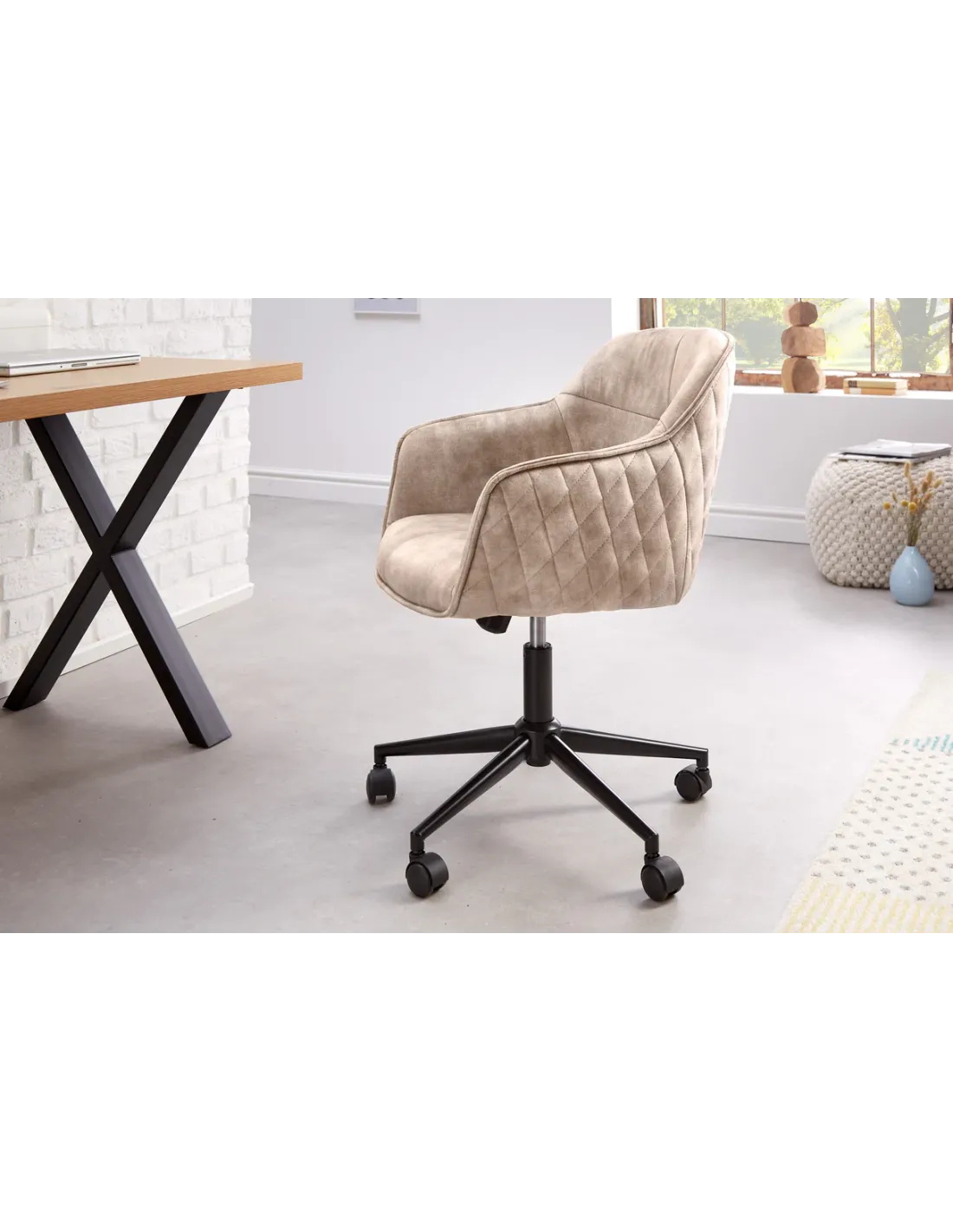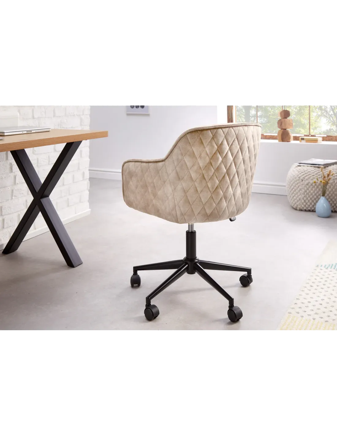 ✨ La chaise de bureau EUPHORIA en velours champagne grège allie raffinement, confort et fonctionnalité. Parfaite pour travailler avec élégance, elle s’intègre harmonieusement dans un bureau moderne, un espace de télétravail ou même une chambre raffinée.