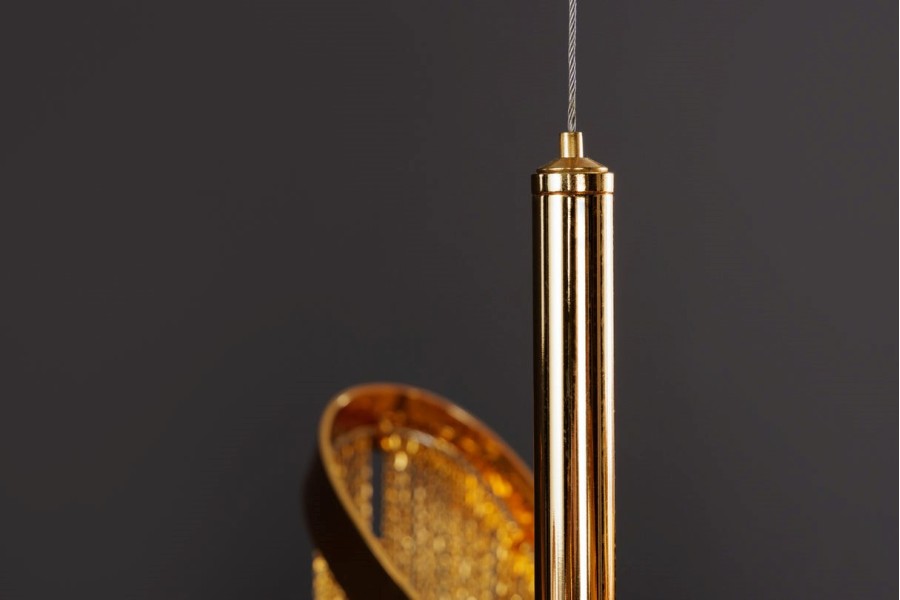 - Abat-jour : Composé de centaines de fines chaînes métalliques dorées qui créent un effet visuel captivant en diffusant subtilement la lumière.