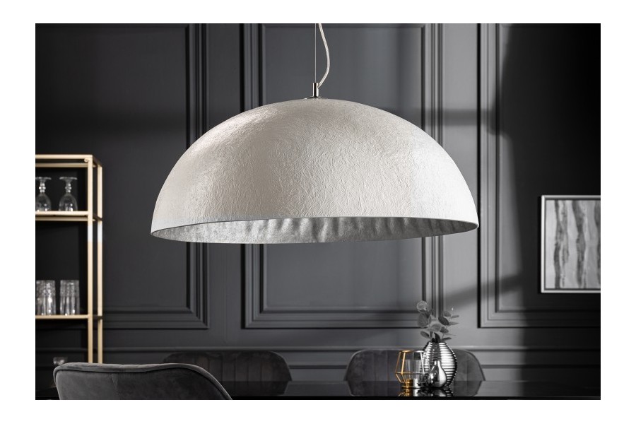 Offrez à votre table à manger ou à votre salon une ambiance particulièrement chaleureuse et conviviale en intégrant la suspension exceptionnelle GLOW à votre intérieur. Son large abat-jour en forme de demi-sphère est fabriqué en fibre de verre et en résine de verre. Grâce à son réflecteur intérieur en argent antique, elle diffuse une lumière indirecte aux teintes semblables à celles du soleil.