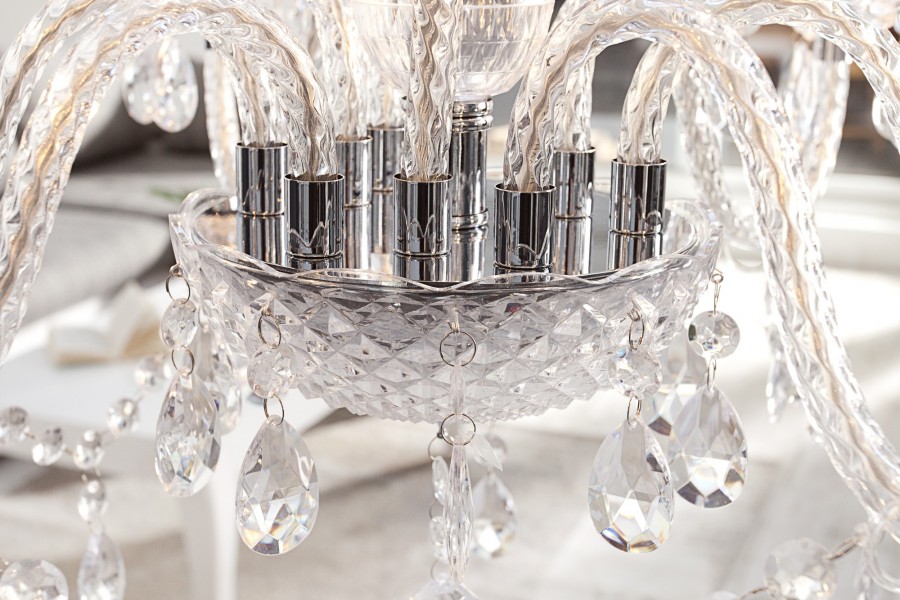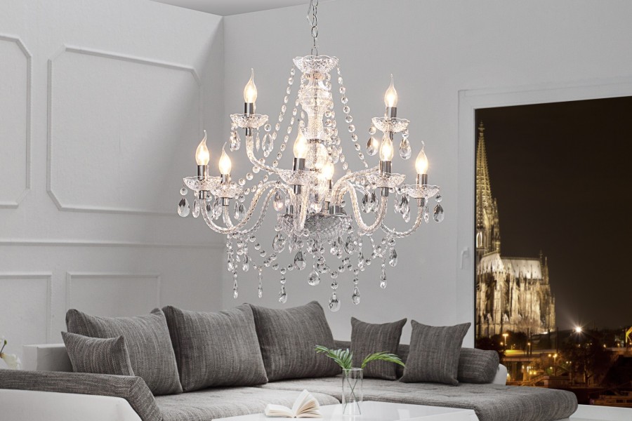 Un lustre transparent avec 9 branches sous forme de bougies offre une ambiance design et chic pour votre intérieur.