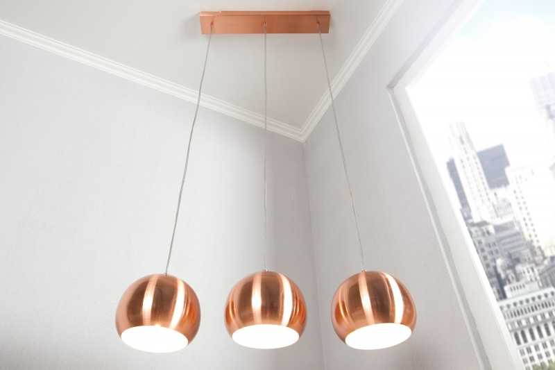 Une lampe-ensemble de 3- suspendue en métal du couleur cuivre convient parfaitement dans tous les intérieurs.