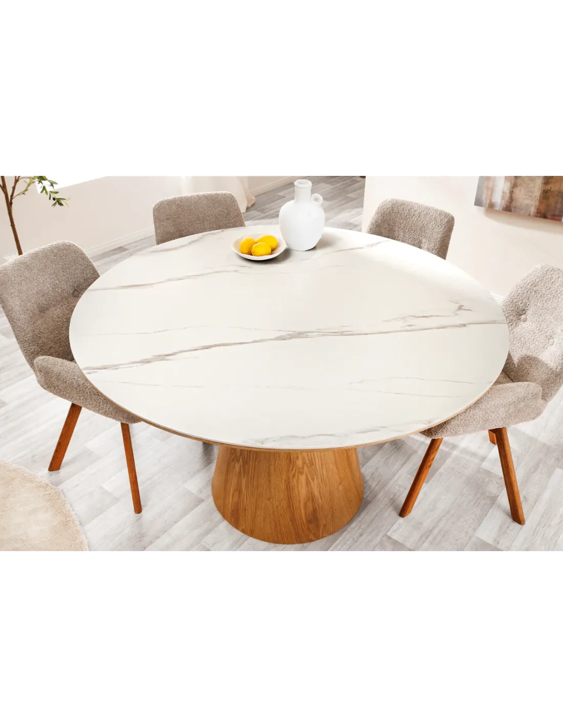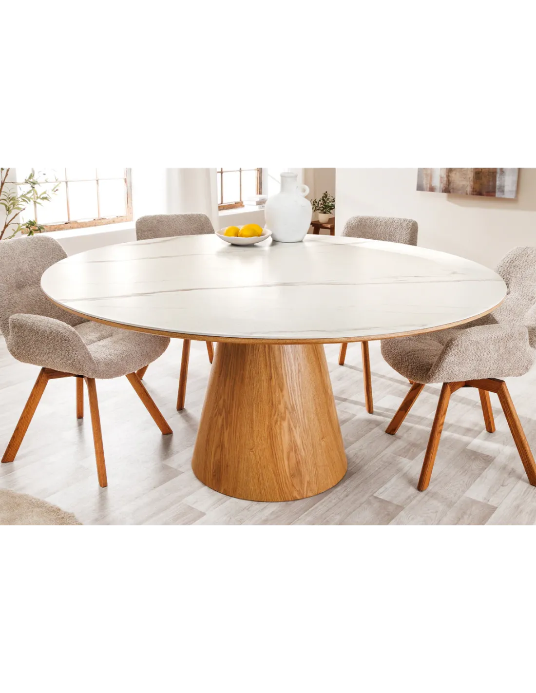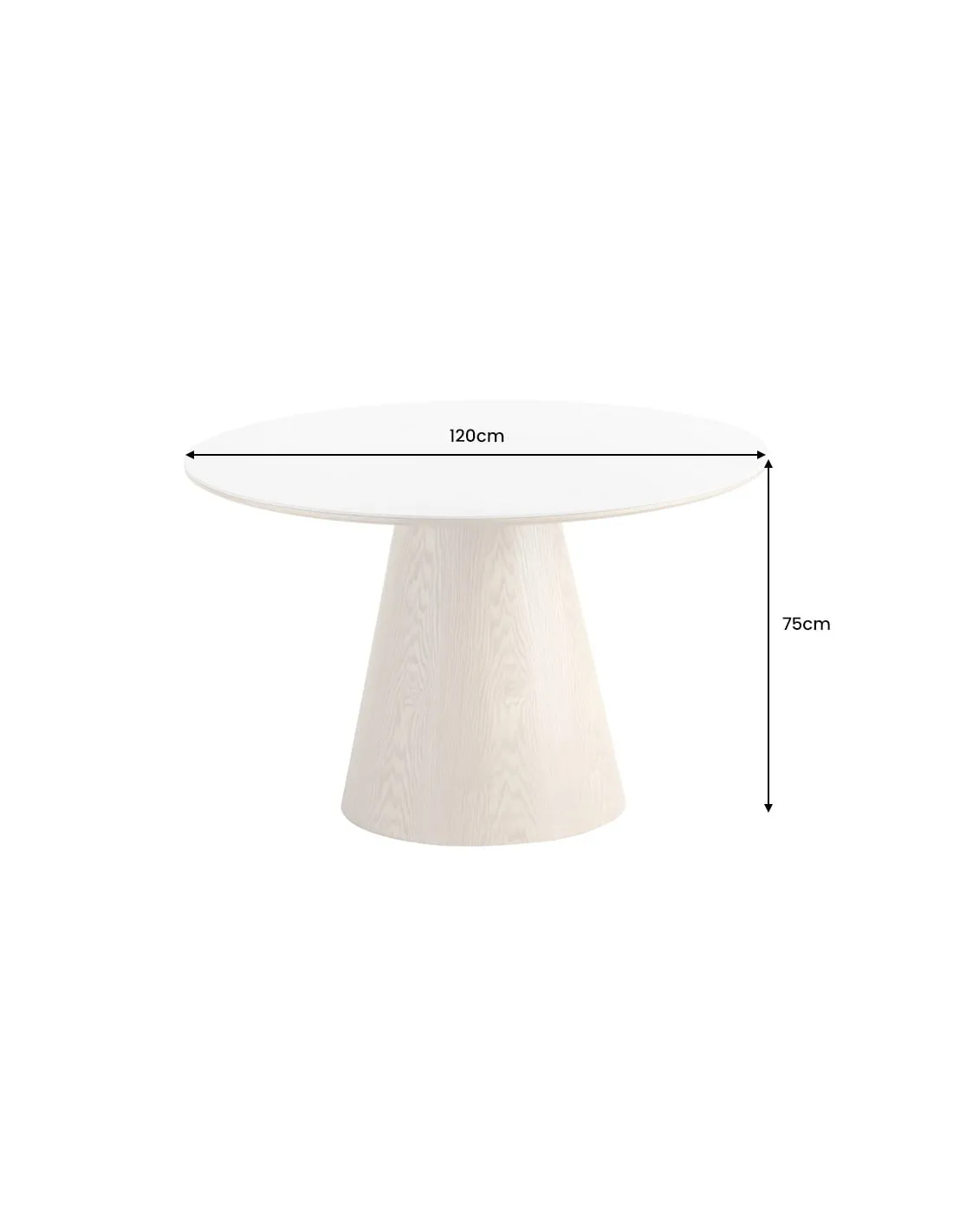 Sa forme ronde de 120 cm permet d’accueillir confortablement 4 à 6 personnes, favorisant la convivialité et le partage autour des repas. Son design épuré lui permet de s’intégrer facilement dans différents styles d’intérieurs.